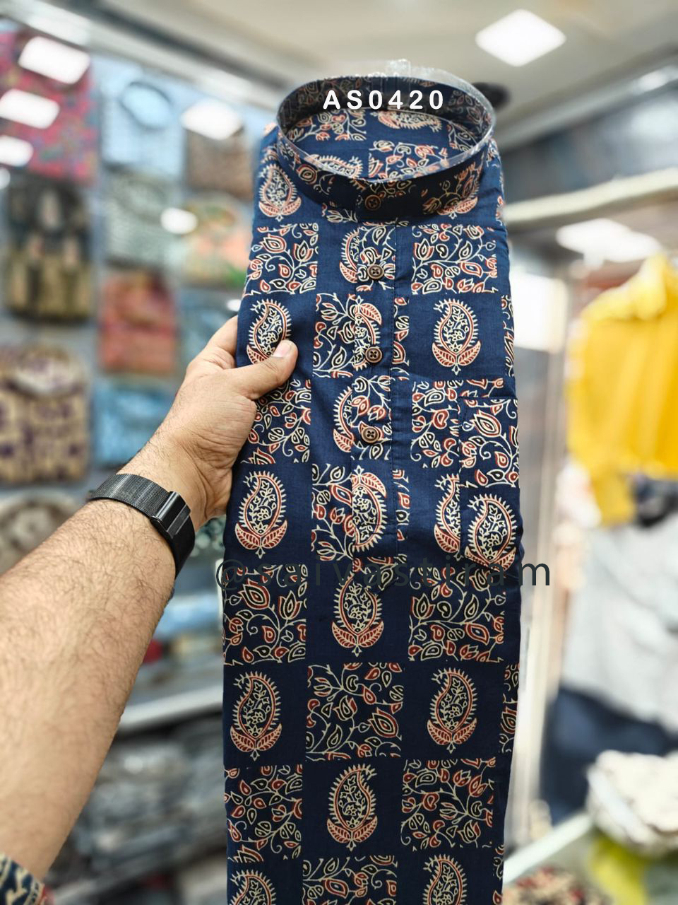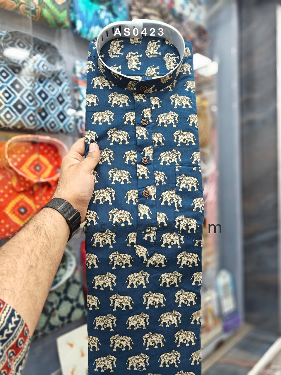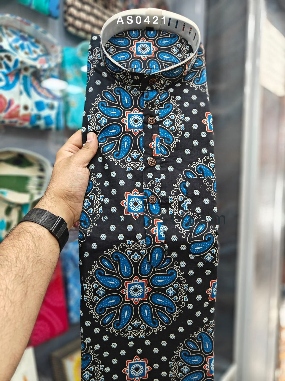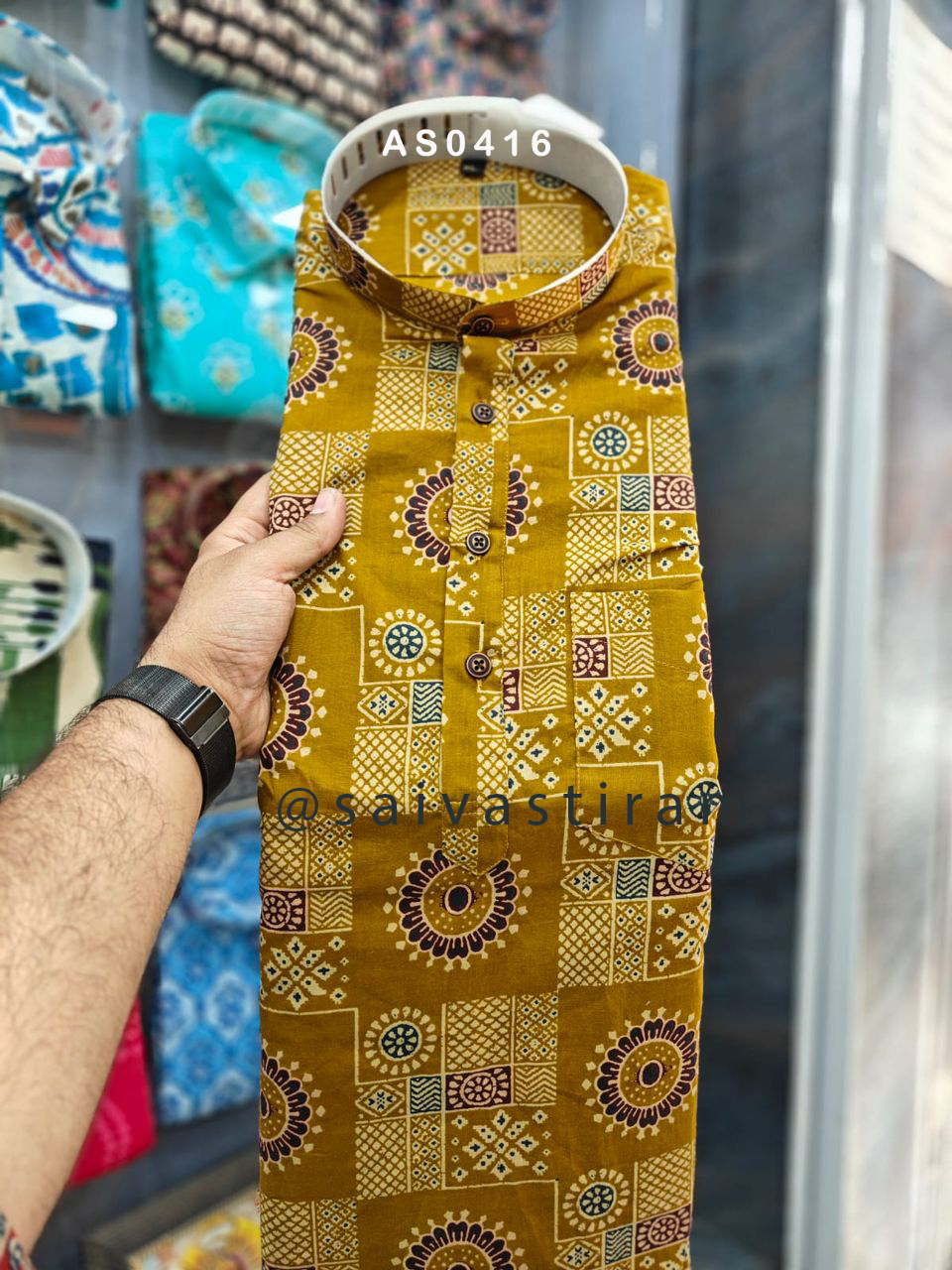 AS04: Short Kurta Long Sleeve Jaipuri Cotton Regular Fit Printed