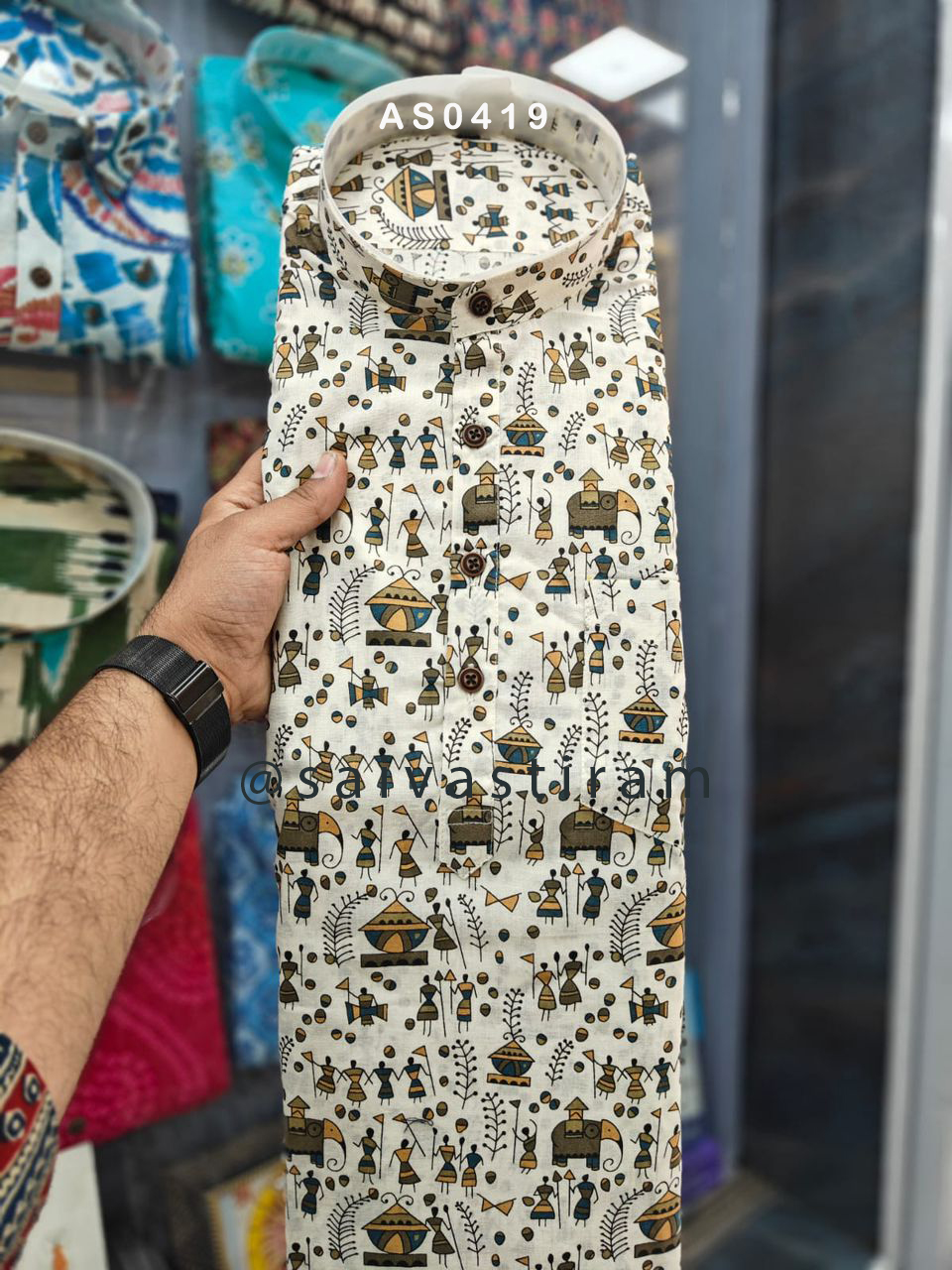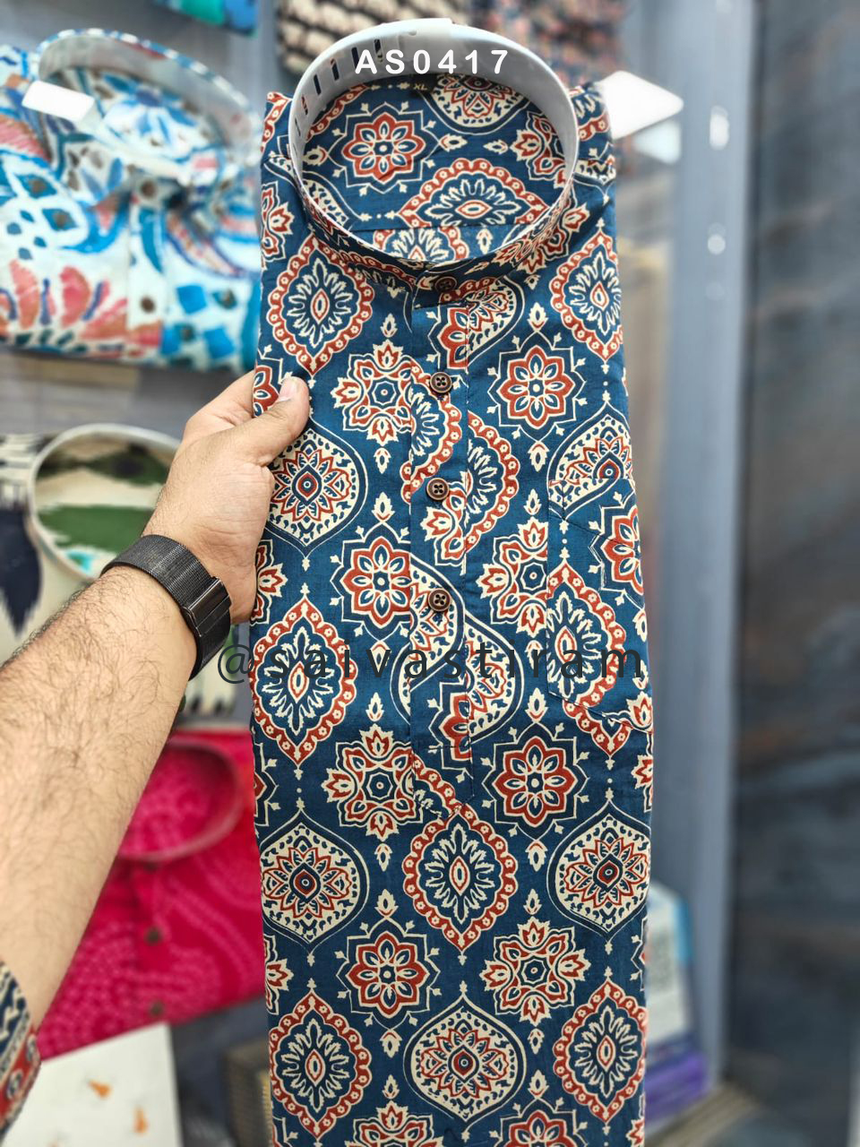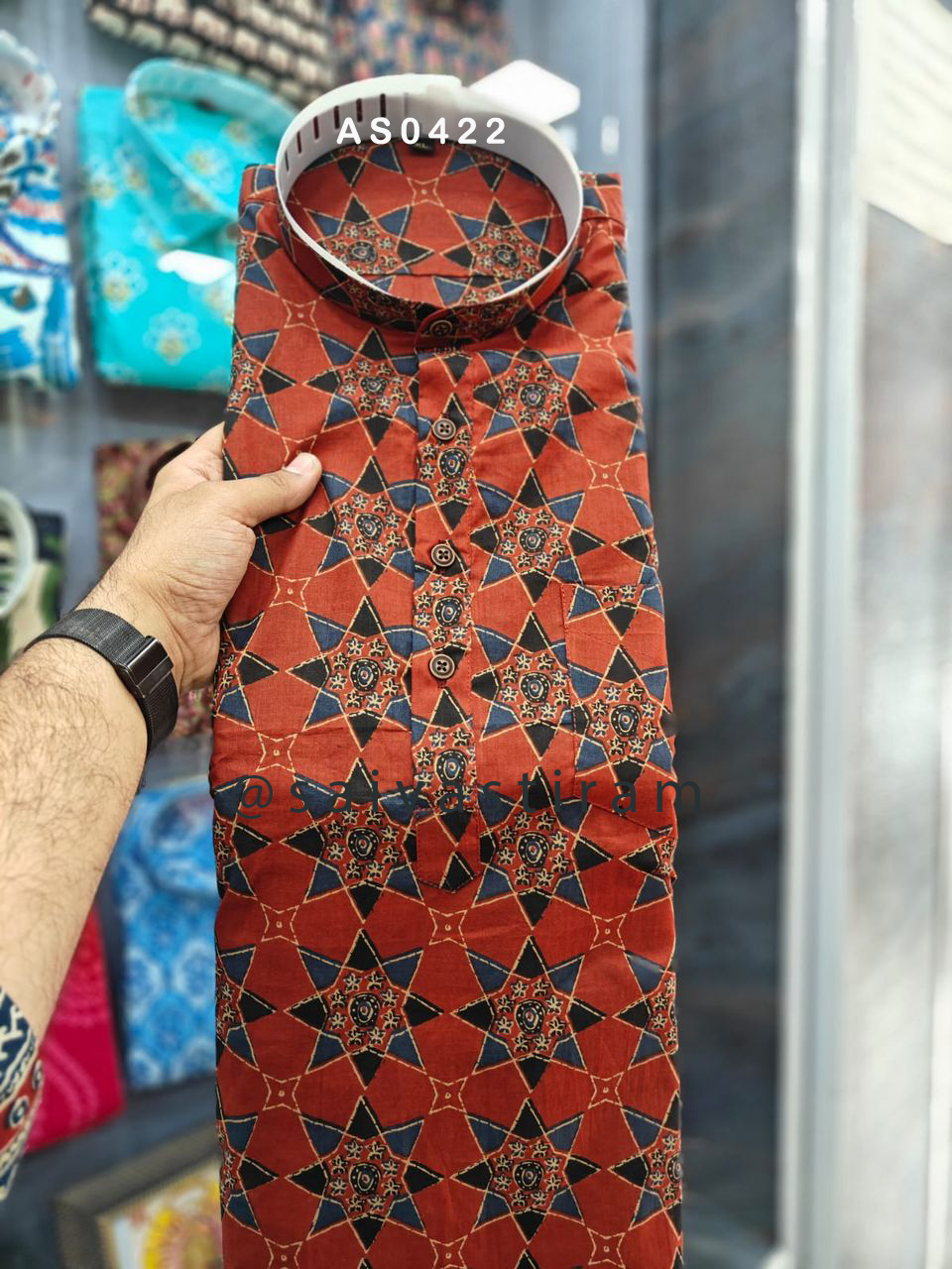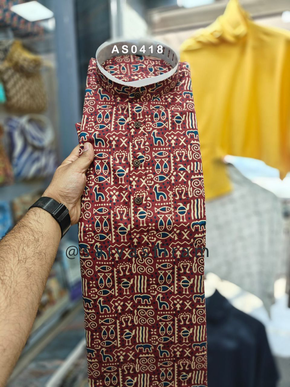 AS04: Short Kurta Long Sleeve Jaipuri Cotton Regular Fit Printed