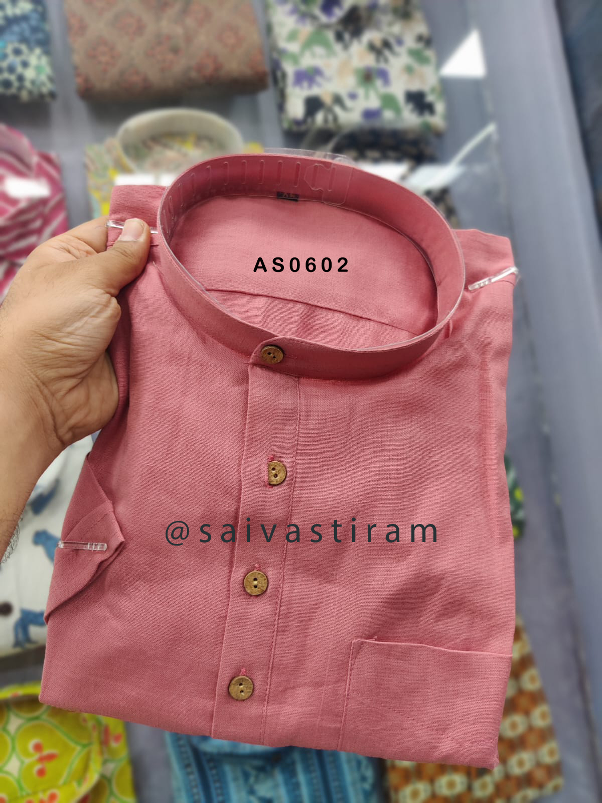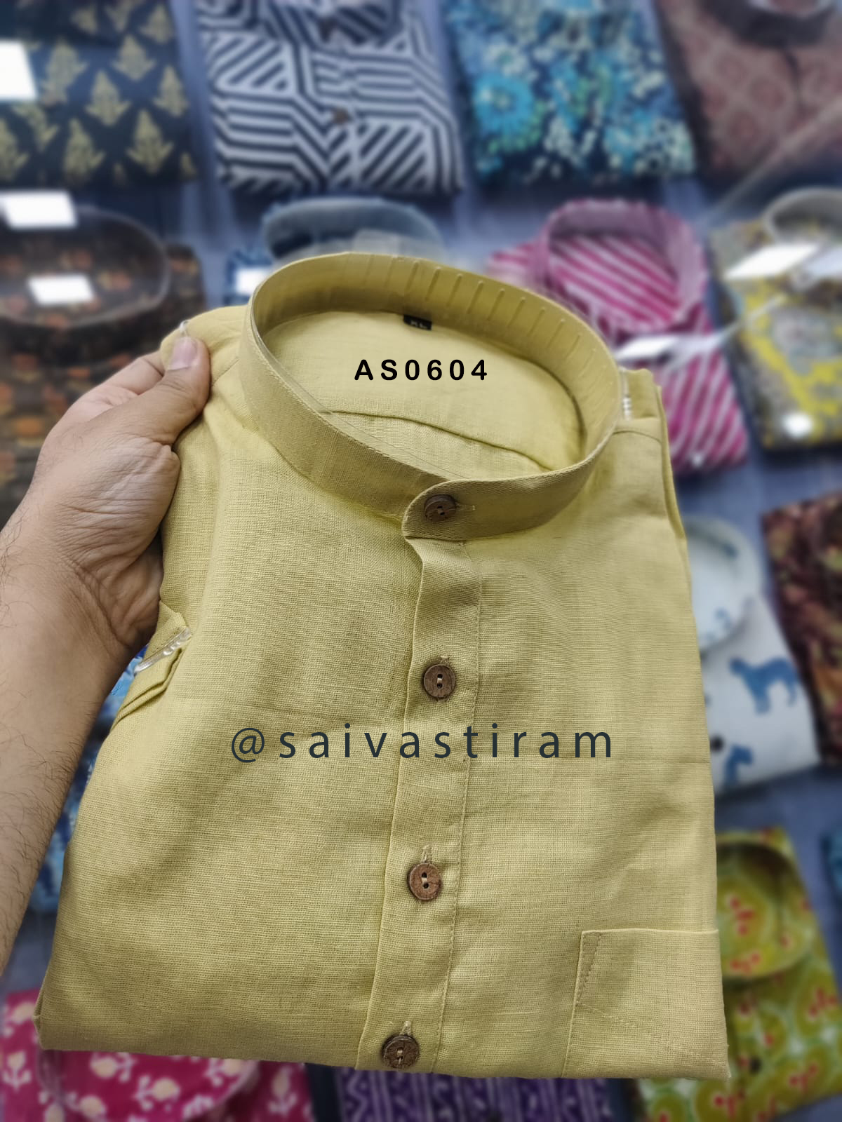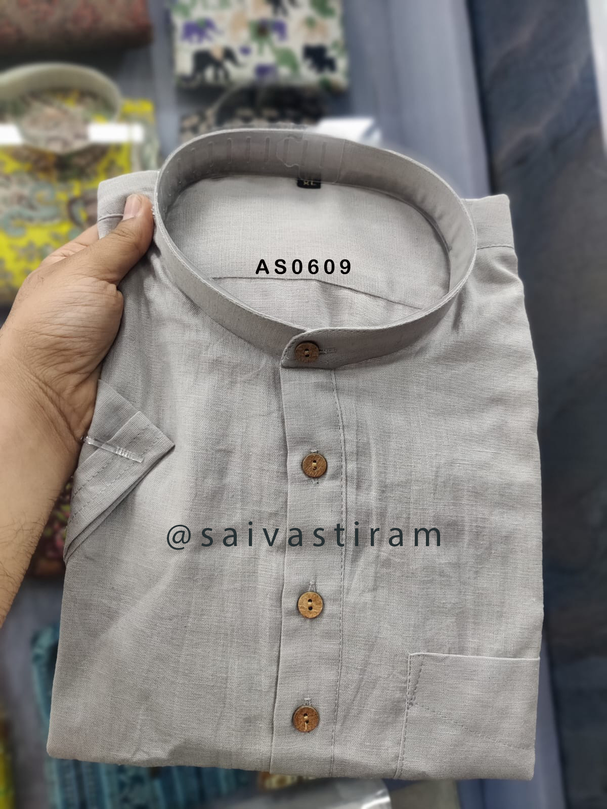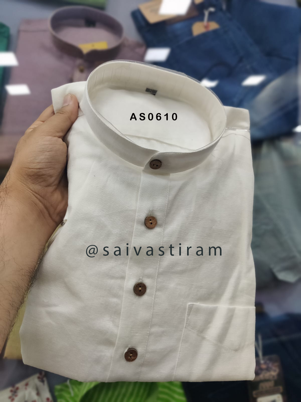 AS06: Short Sleeve Cotton Flex Regular Fit Plain Short Kurta