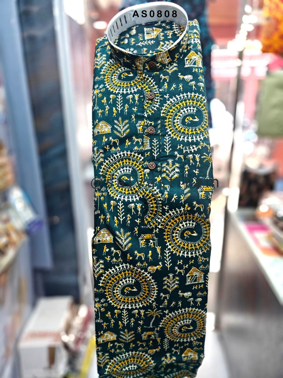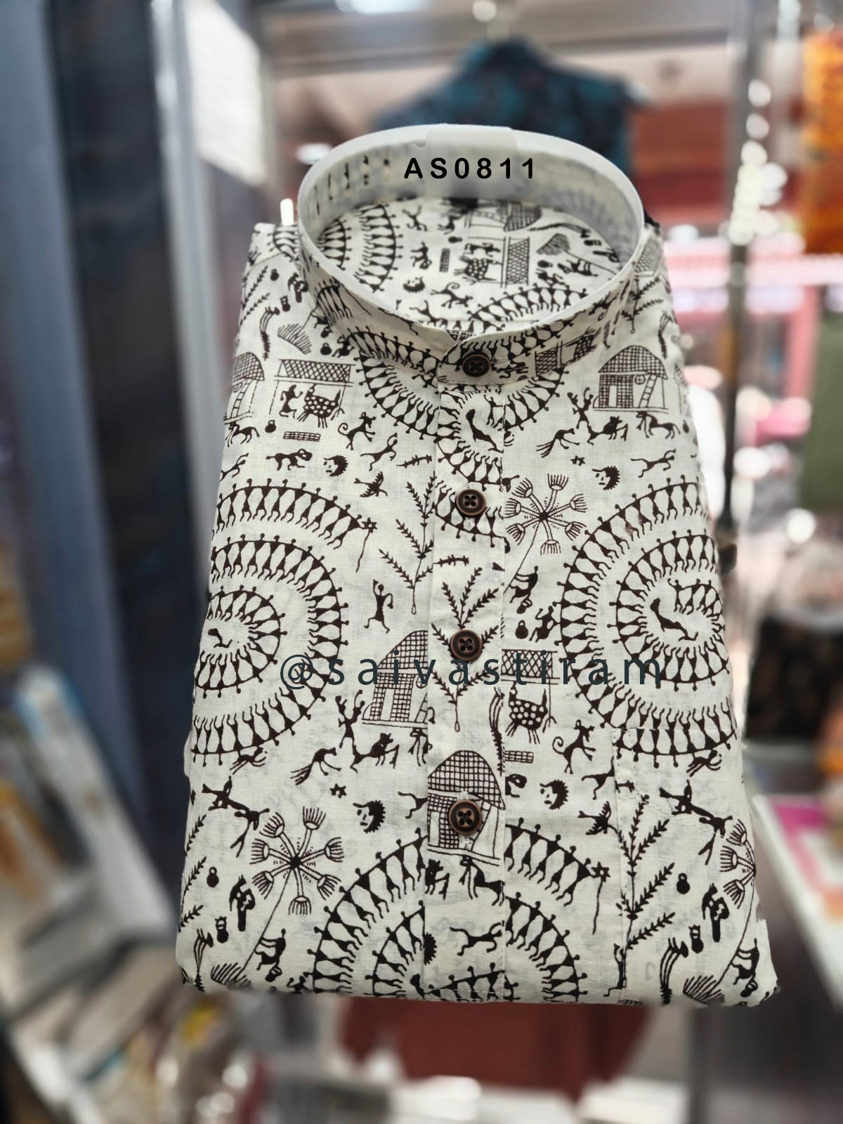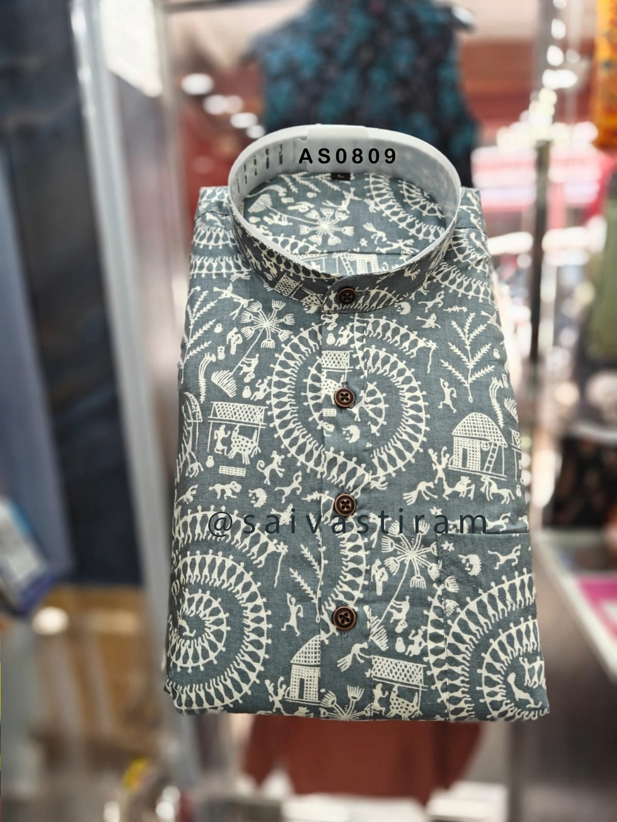 AS08: Long Sleeve Regular Fit Printed Jaipuri Cotton Short Kurta