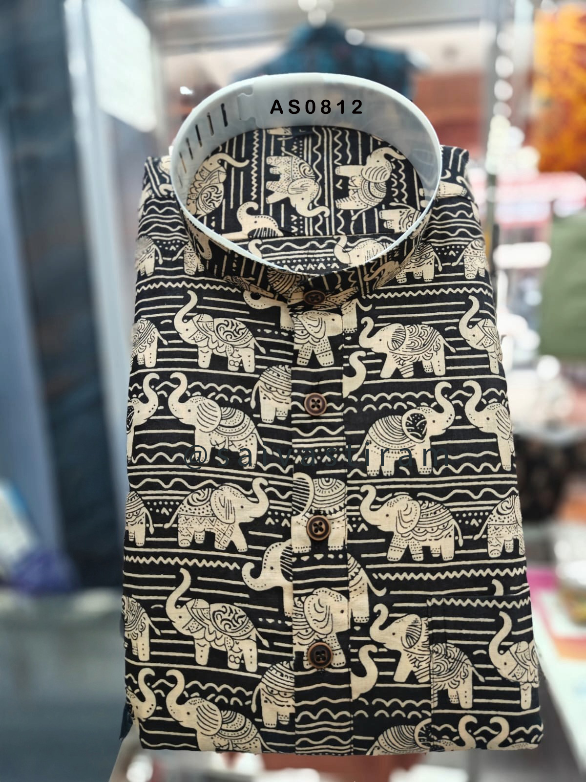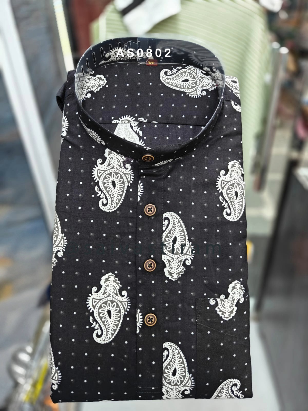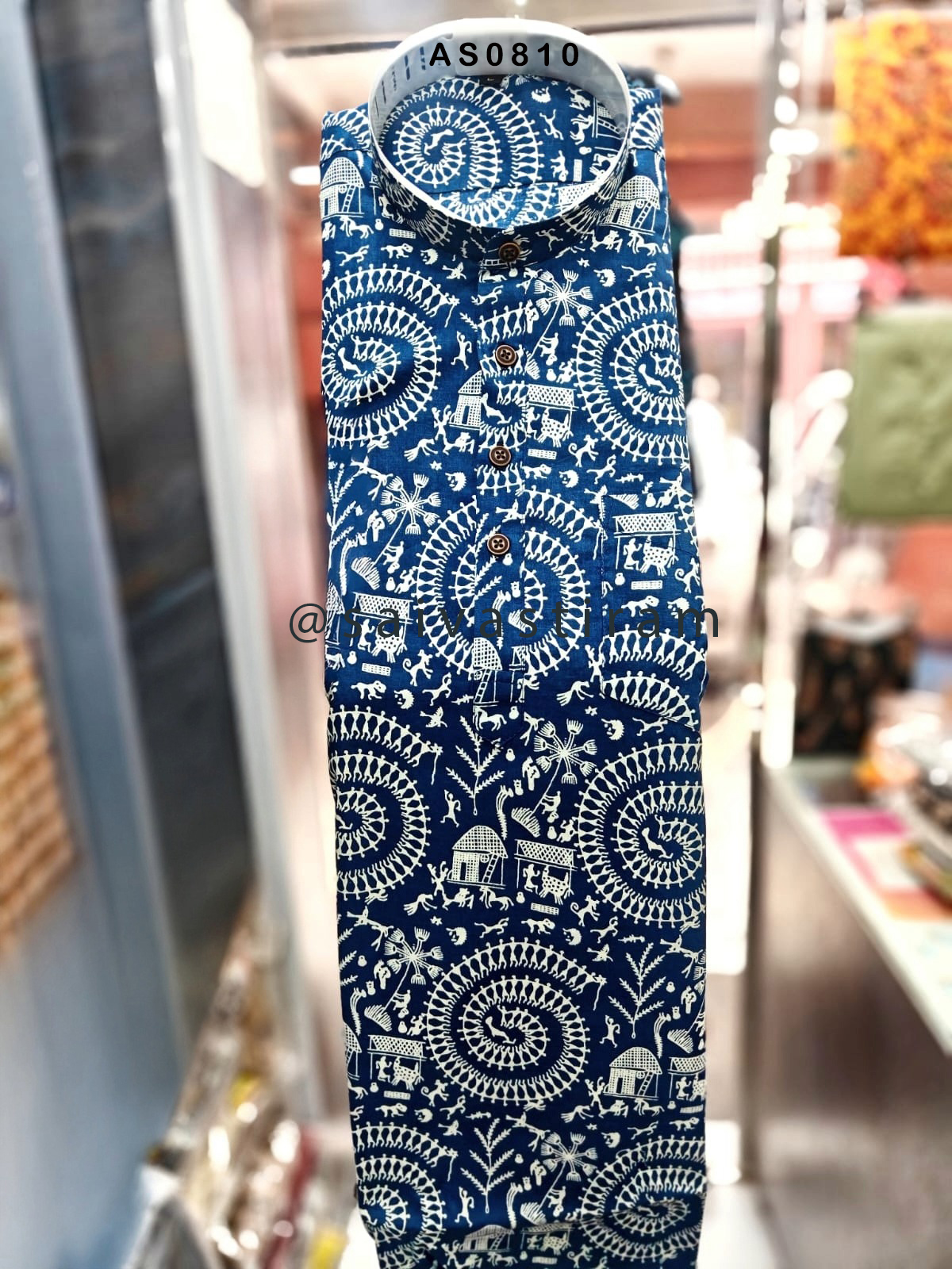 AS08: Long Sleeve Regular Fit Printed Jaipuri Cotton Short Kurta