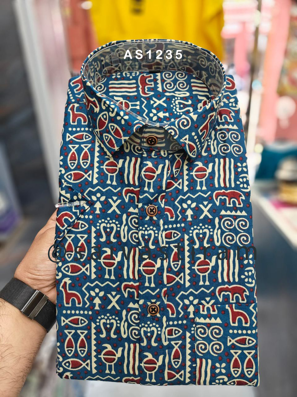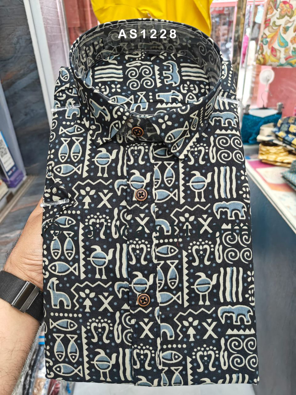 AS12: Short Sleeve Jaipuri Cotton Regular Fit Hand Block Printing Plus Size Shirt 2
