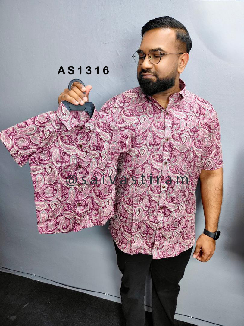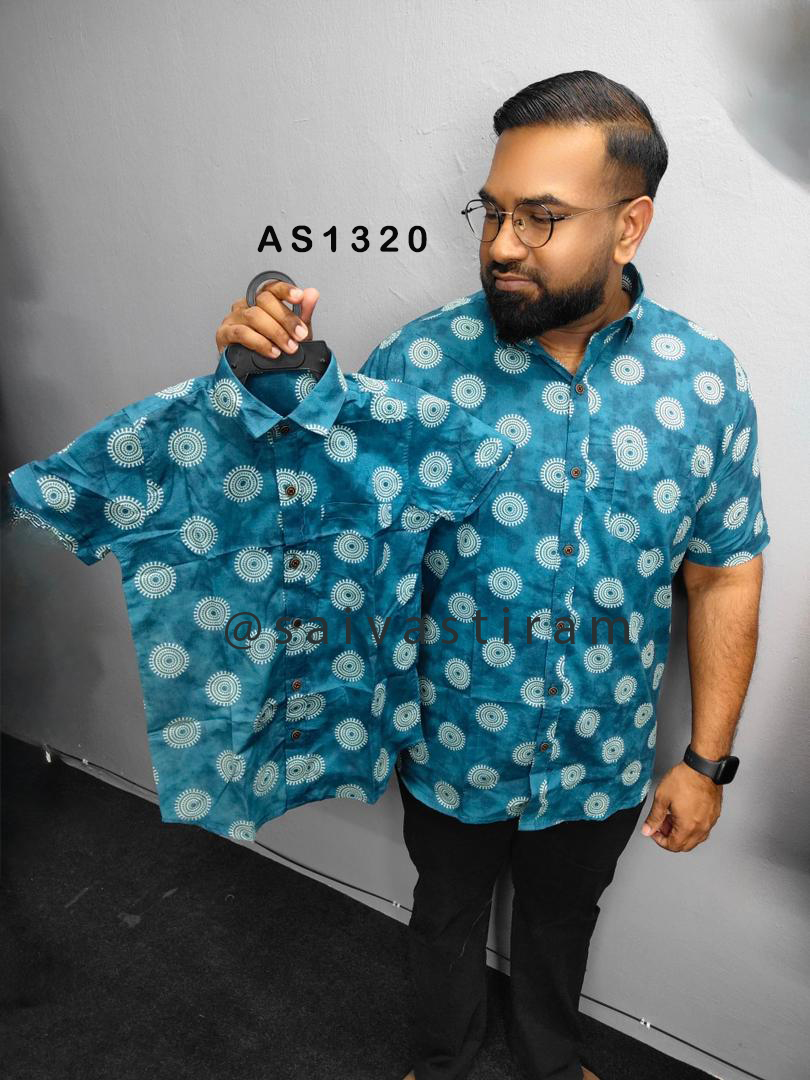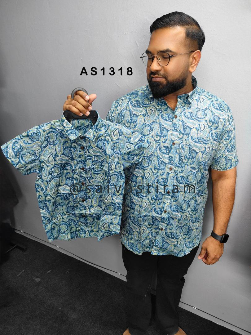 AS13: (KID) Short Sleeve Jaipuri Cotton Regular Fit Printed Father and Son Combo