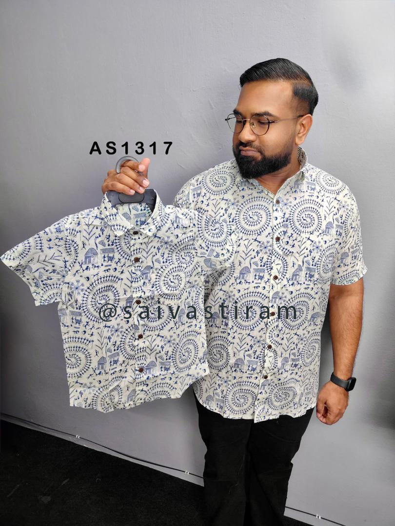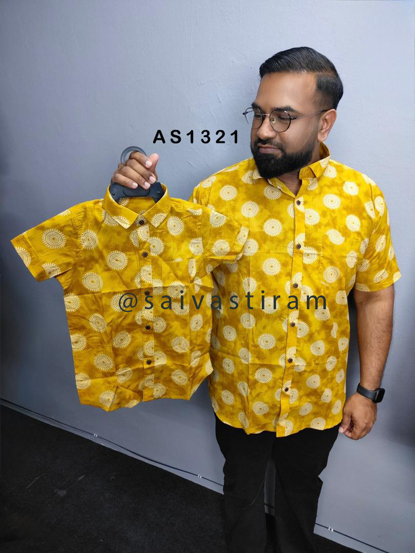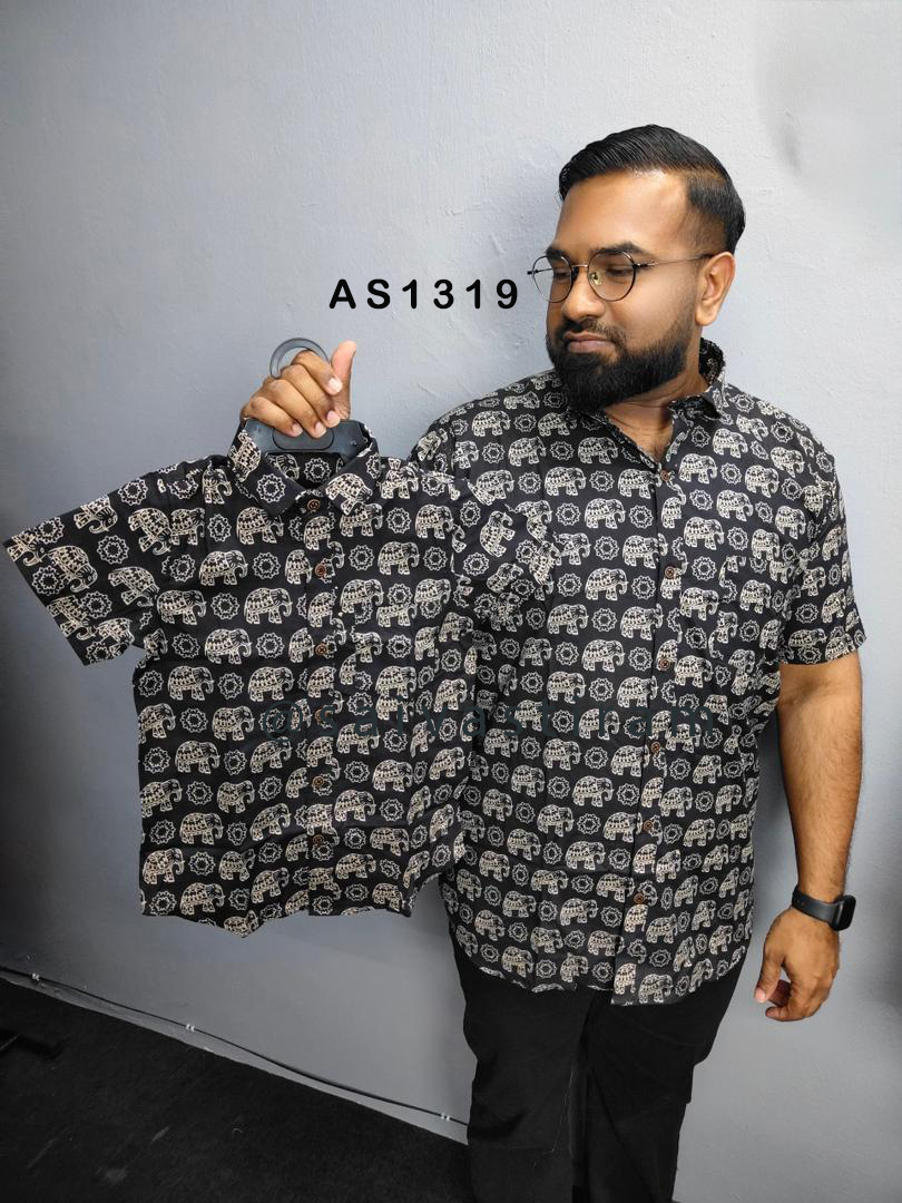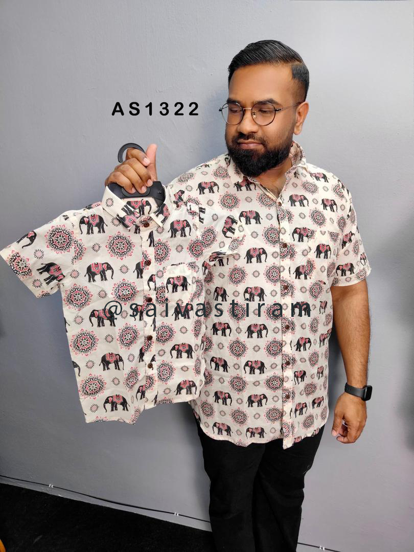 AS13: (KID) Short Sleeve Jaipuri Cotton Regular Fit Hand Block Printing Father and Son Combo
