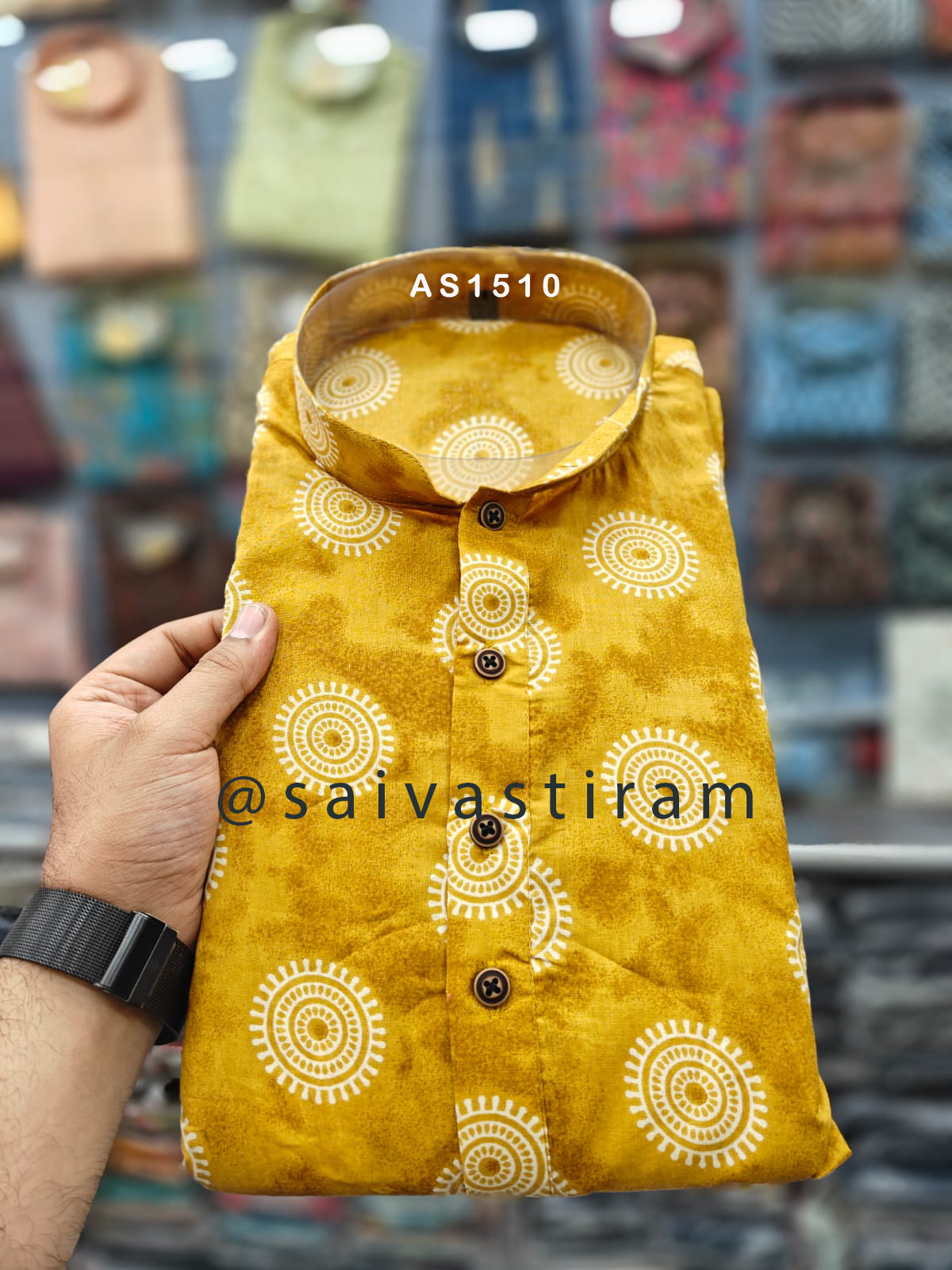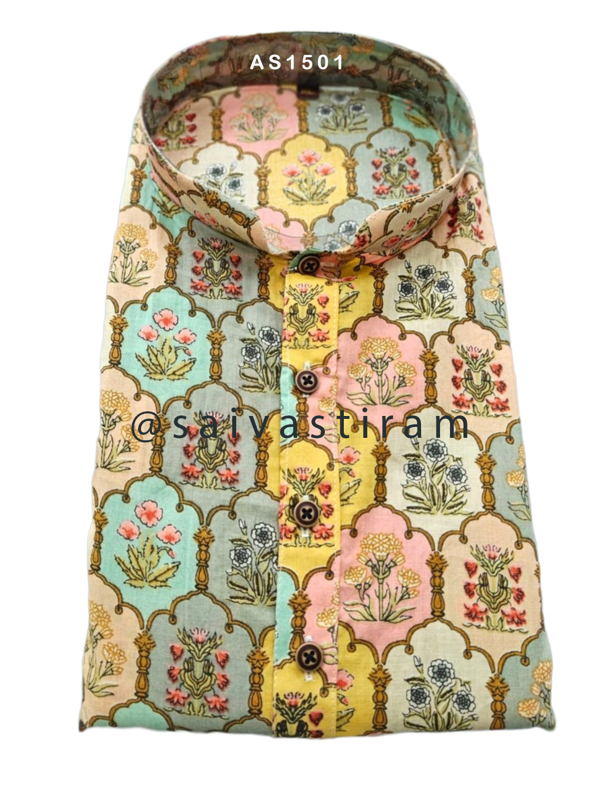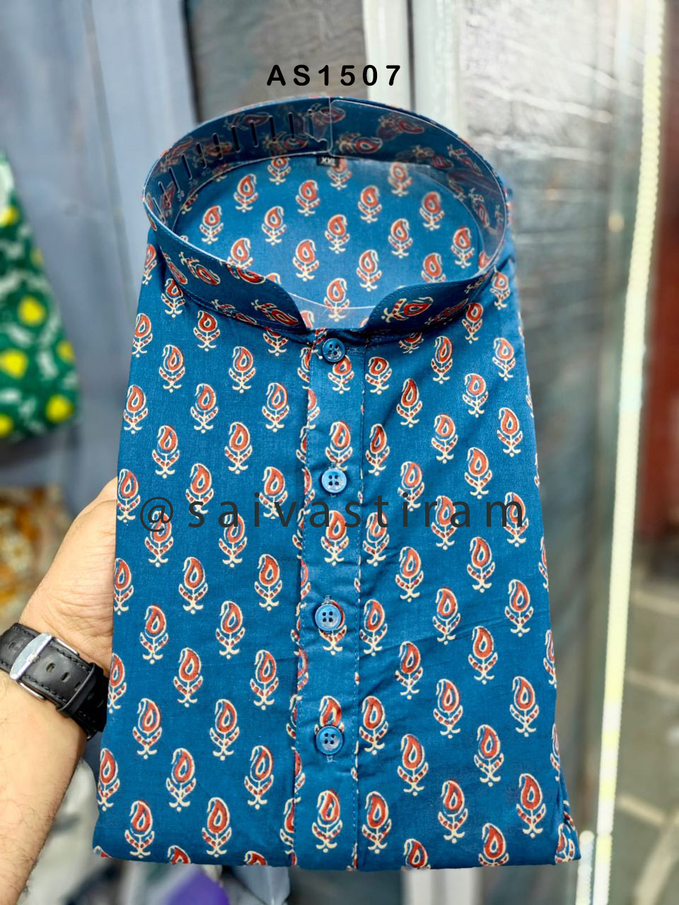 AS15: Long Sleeve Regular Fit Printed Jaipuri Cotton Long Kurta (KURTA ONLY)
