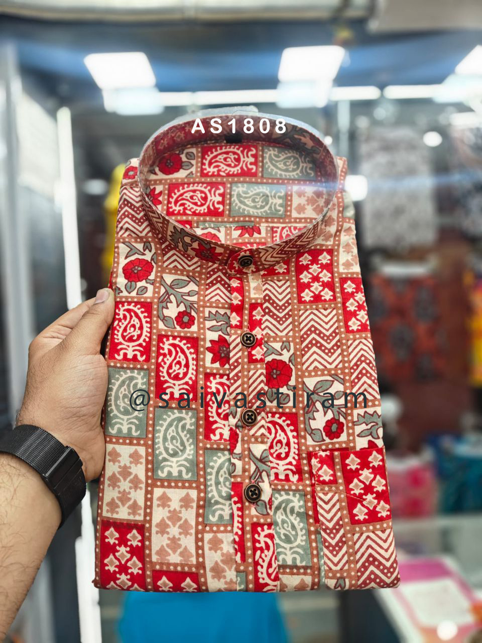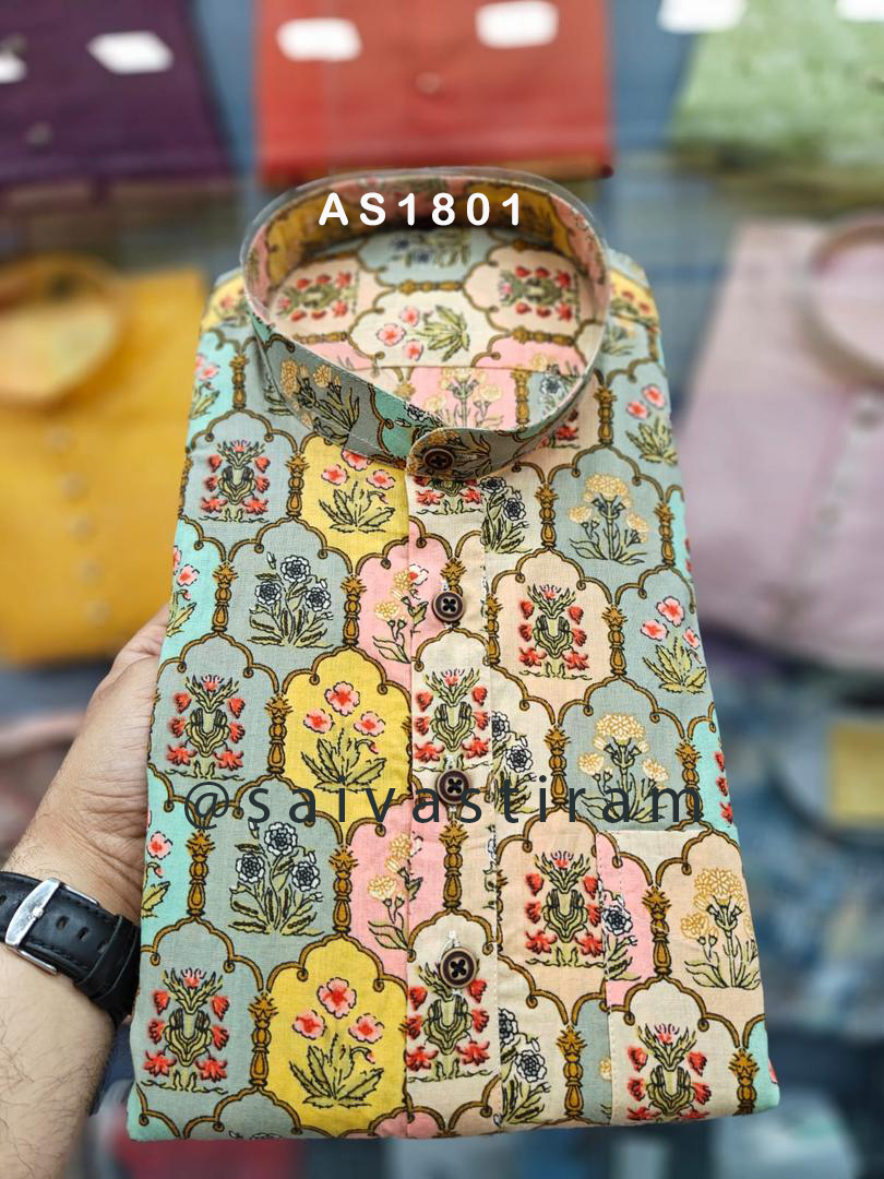 AS18: Long Sleeve Short Jaipuri Cotton Regular Fit Hand Block Printing Kurta (Plus Size)