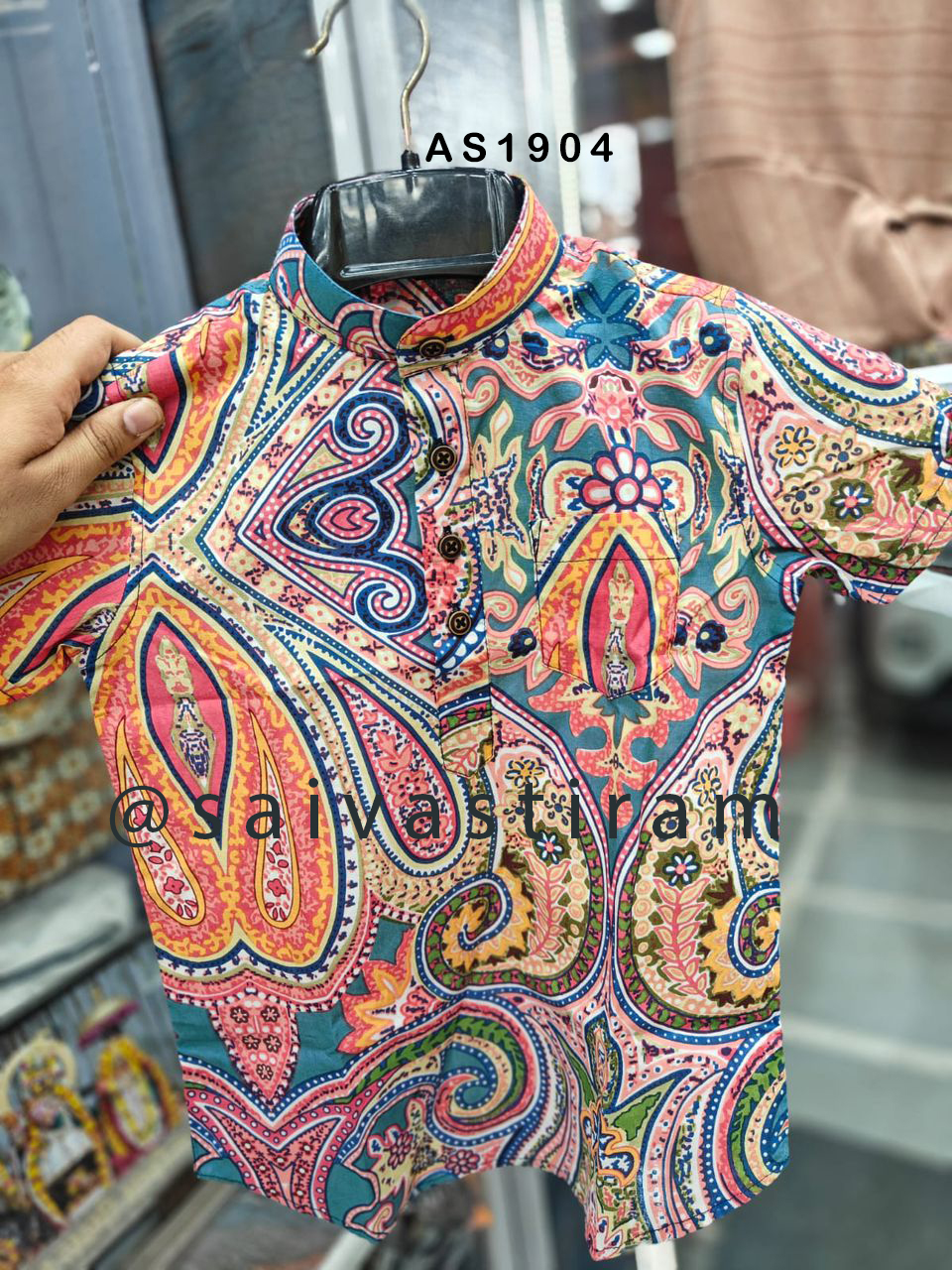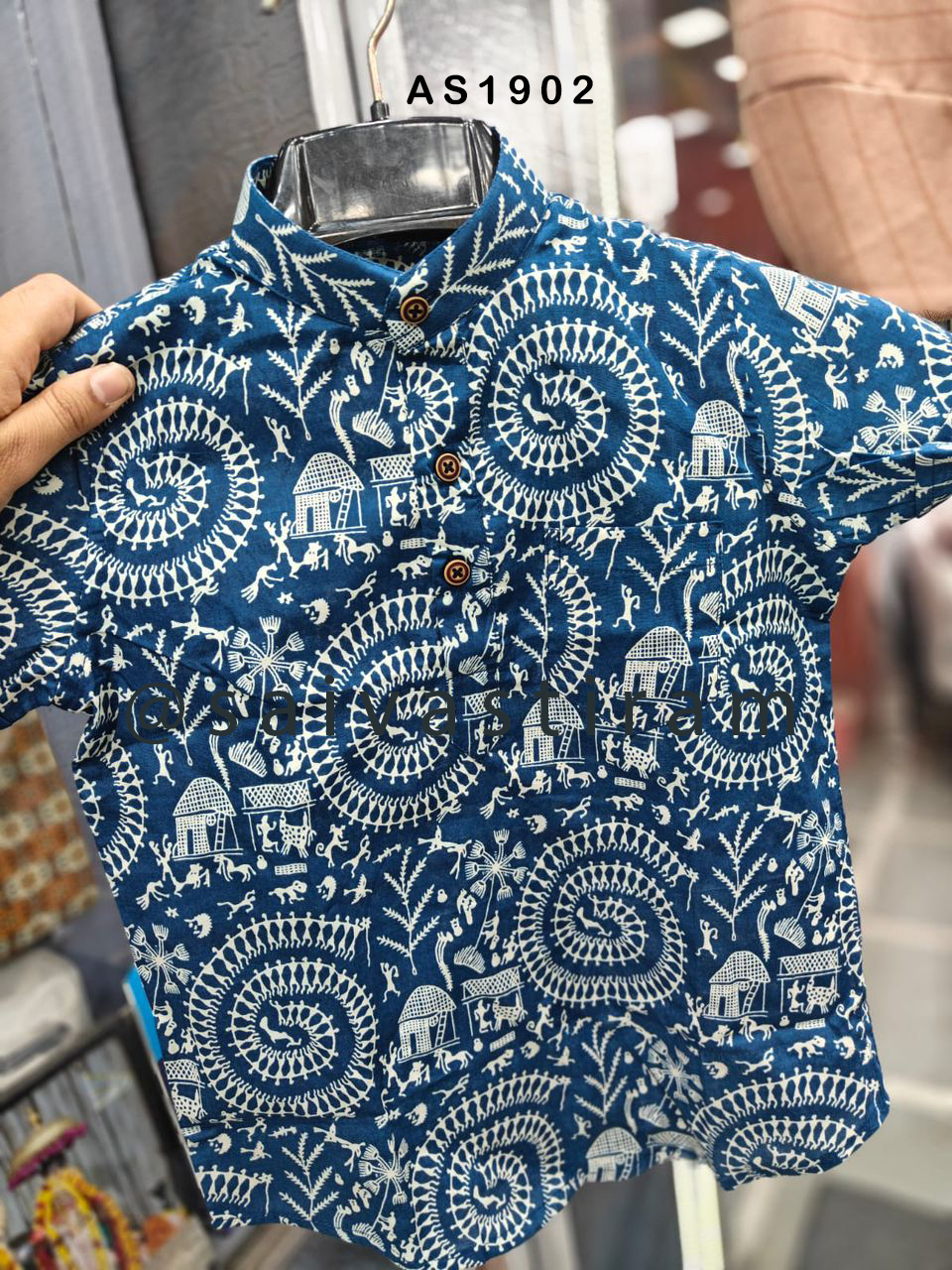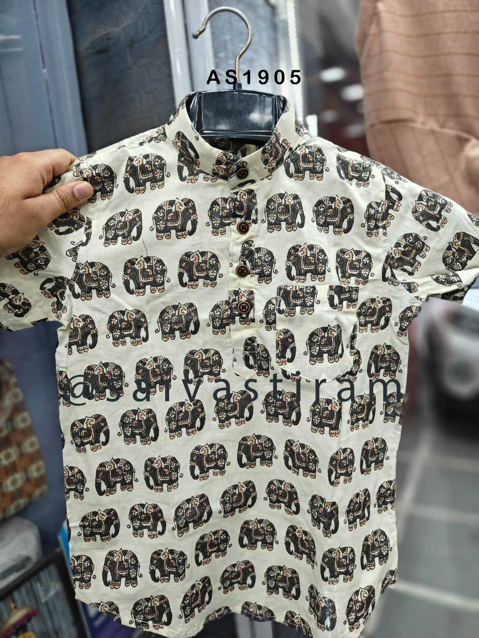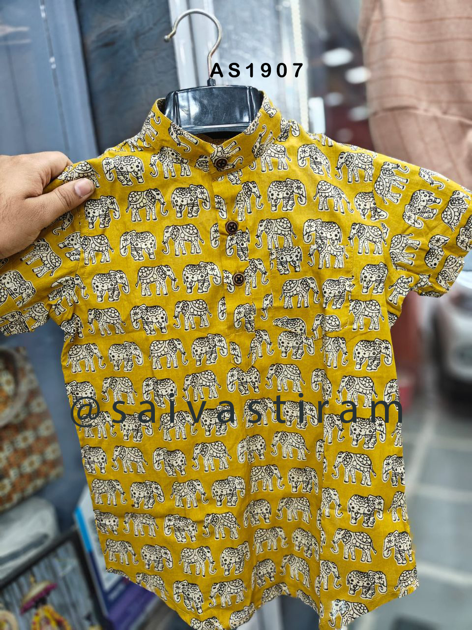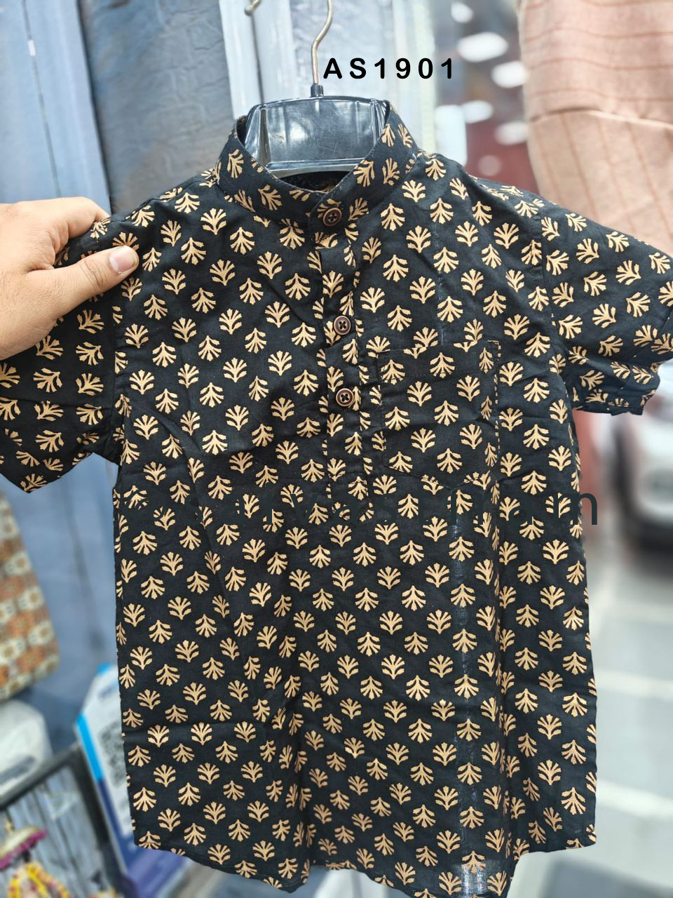 AS19: Short Sleeve Short Kurta Jaipuri Cotton Regular Fit Hand Block Printing for KIDS