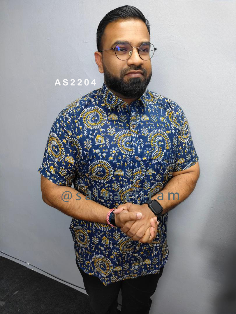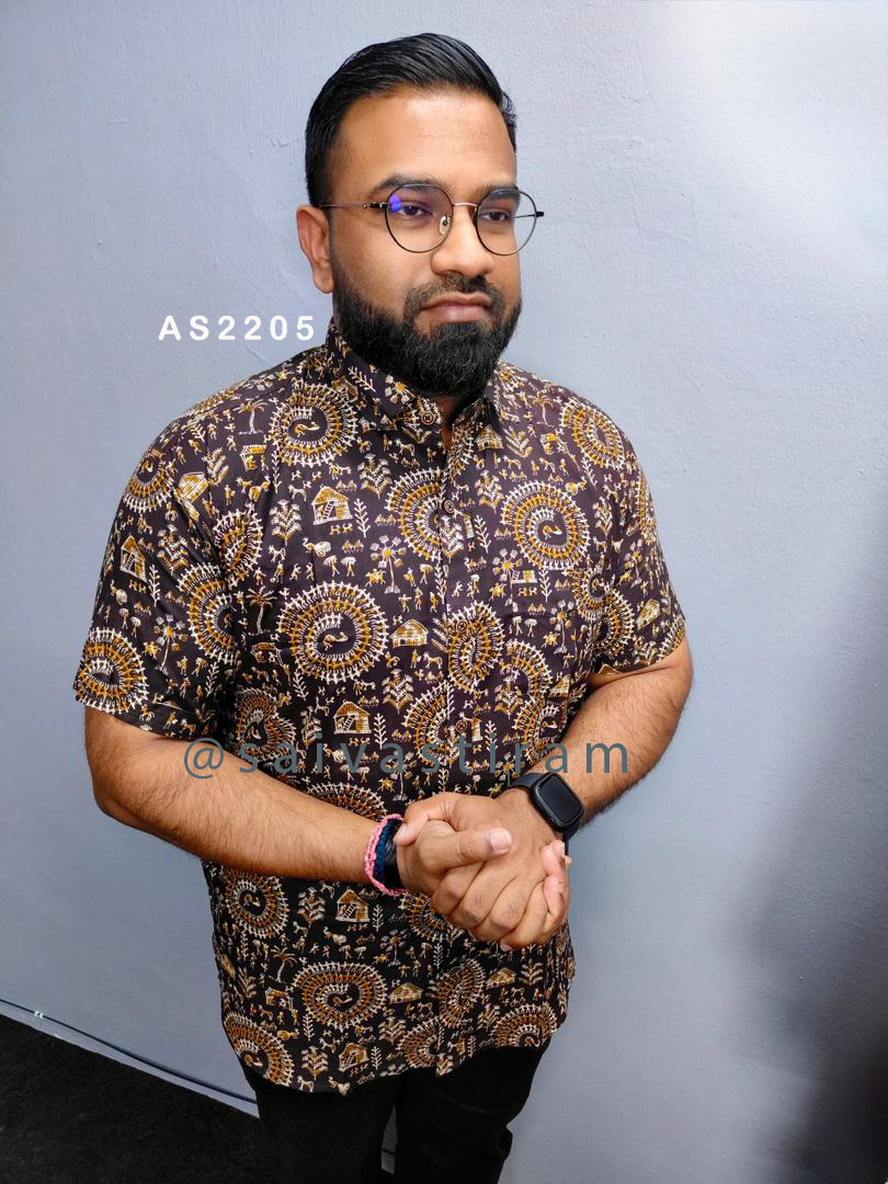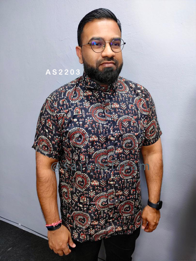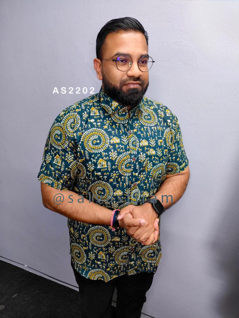 AS22: Short Sleeve Jaipuri Cotton Regular Fit Hand Block Printing Shirt