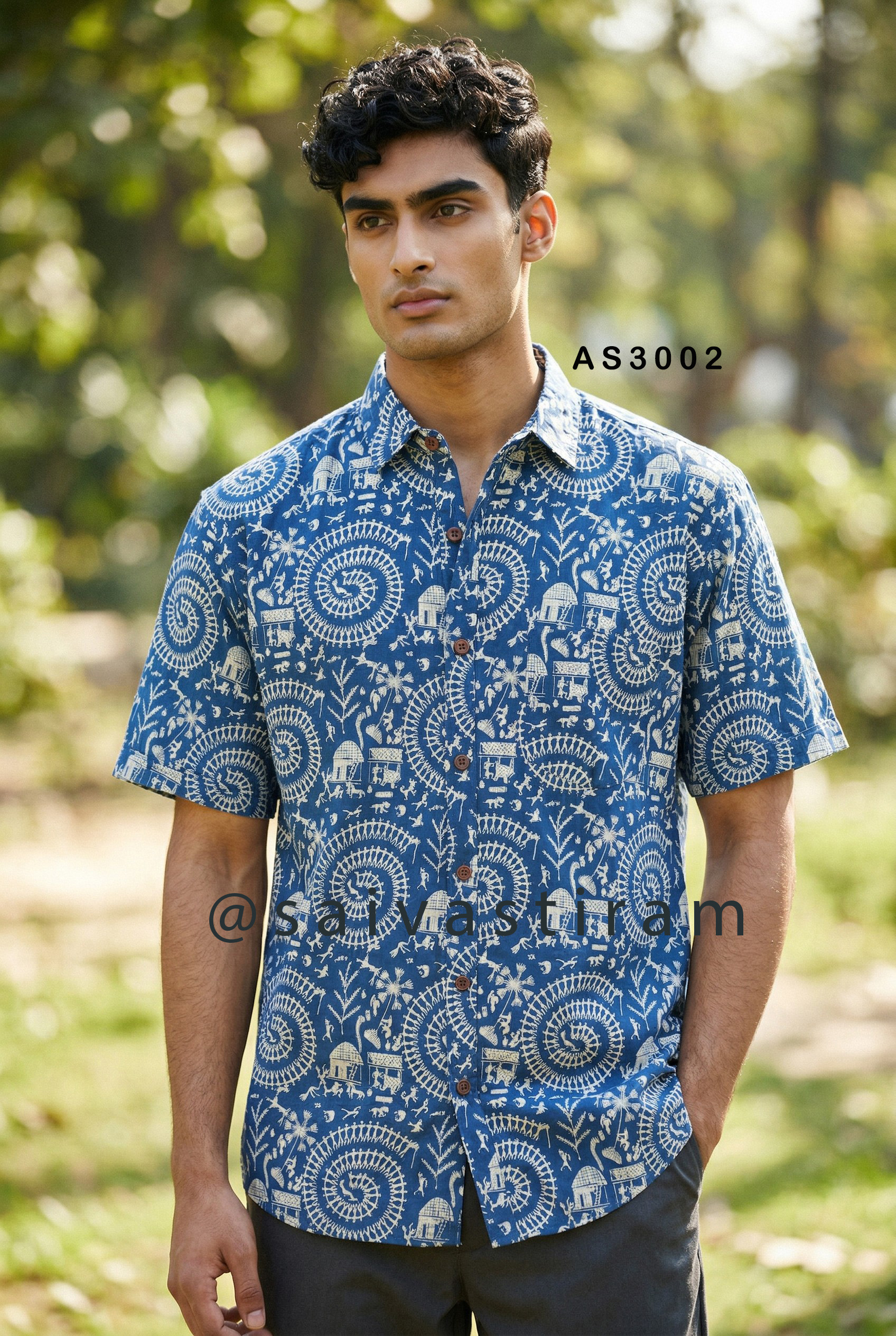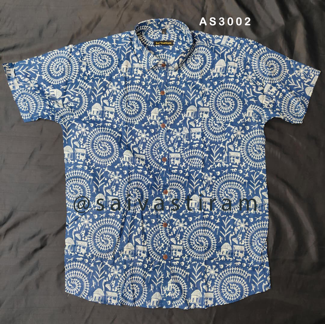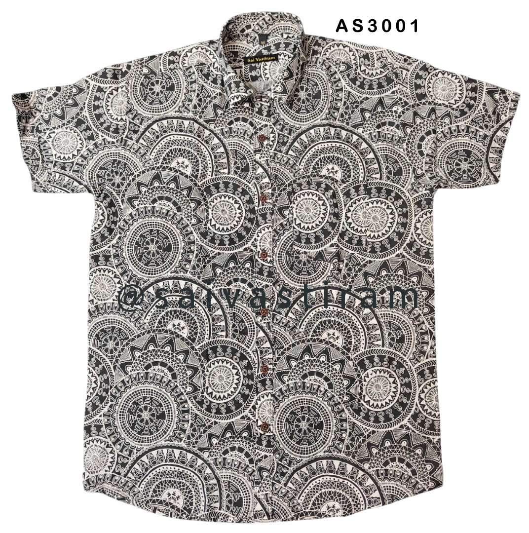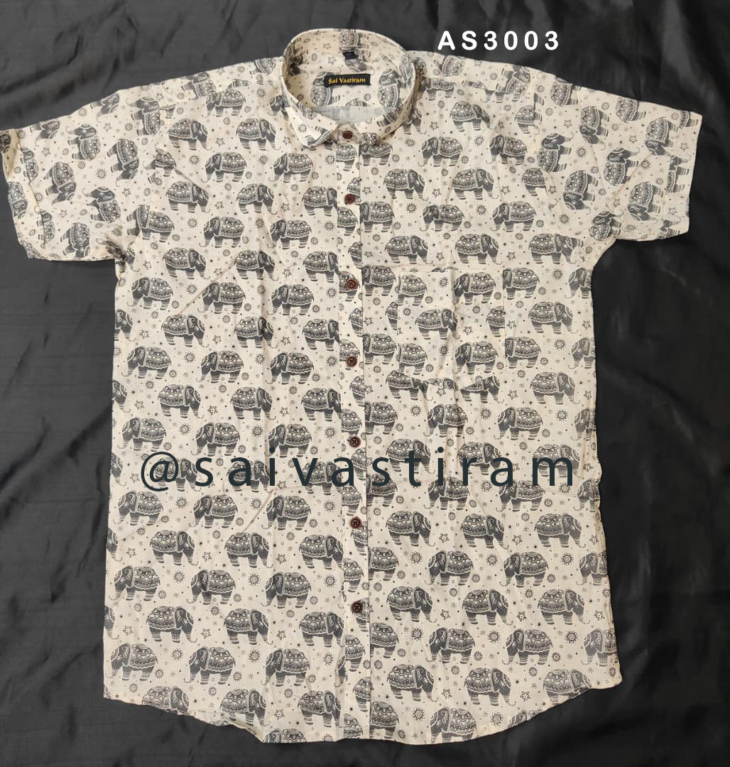AS30: Short Sleeve Jaipuri Cotton Regular Fit Printed Shirt