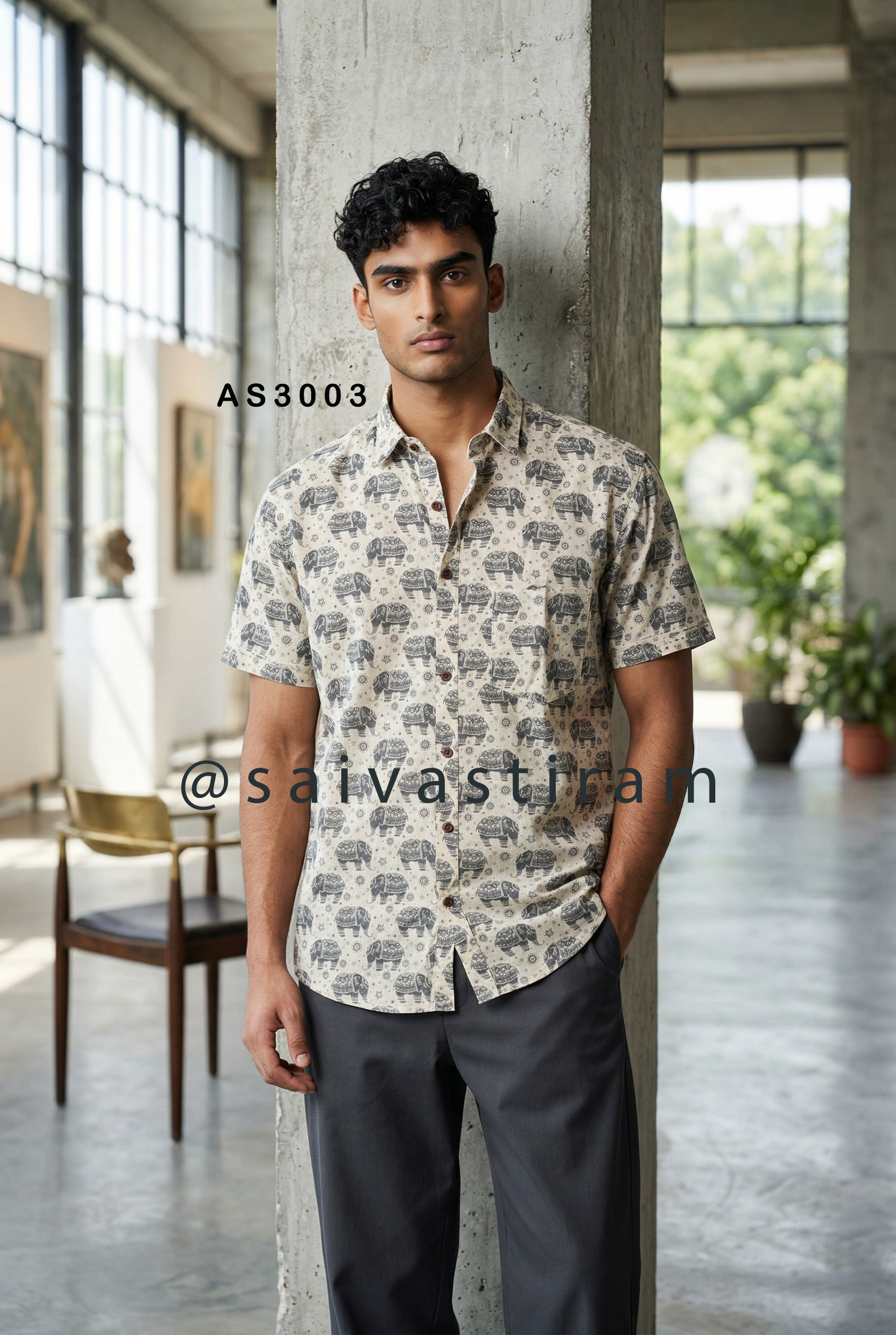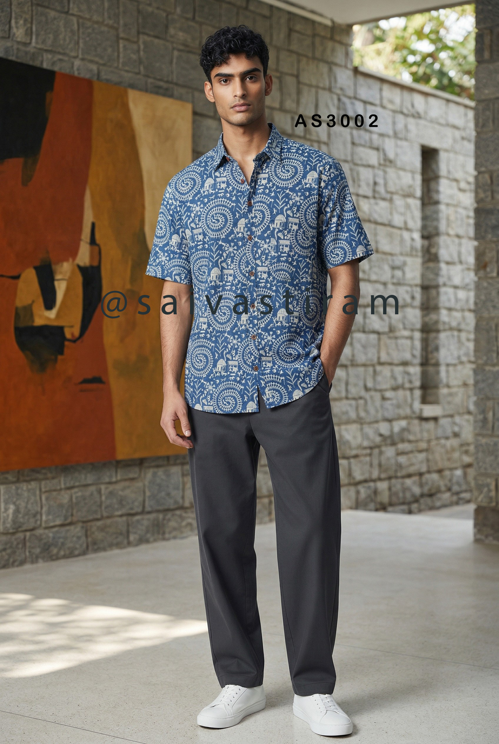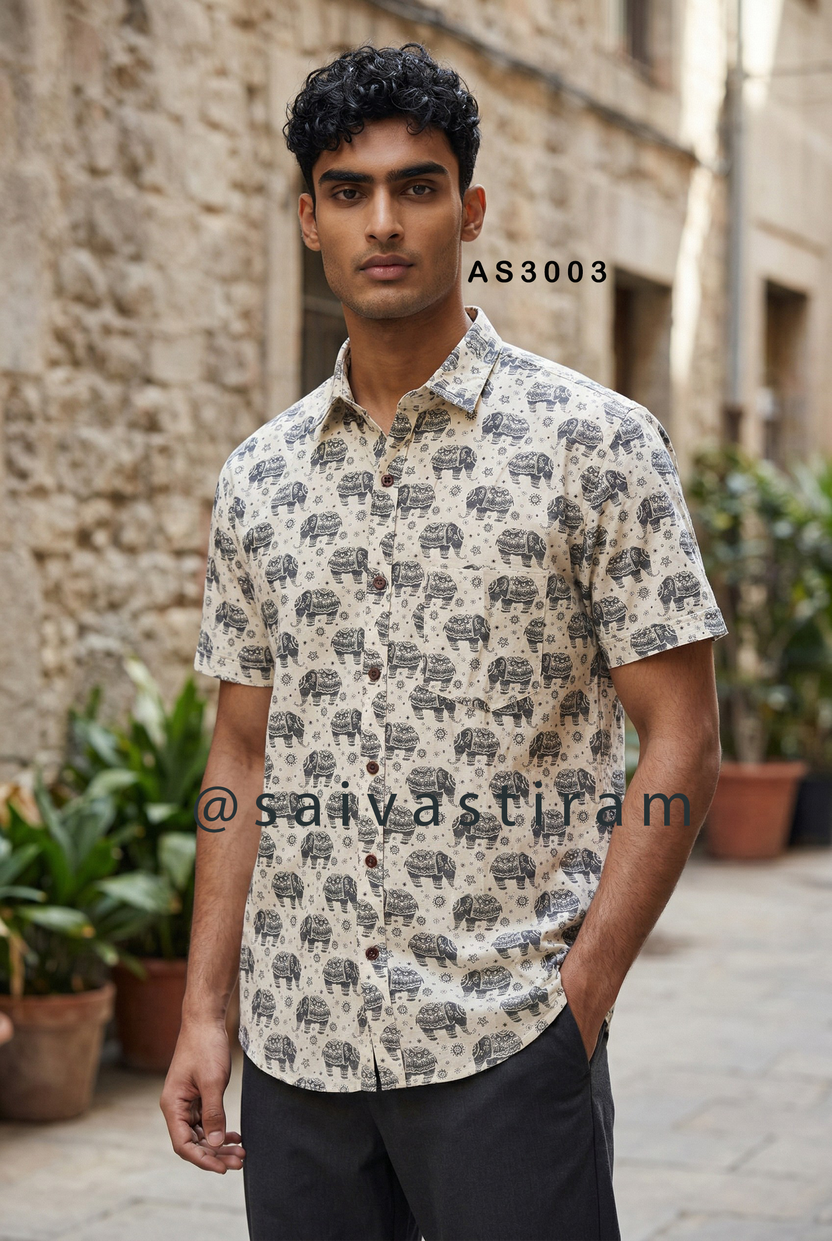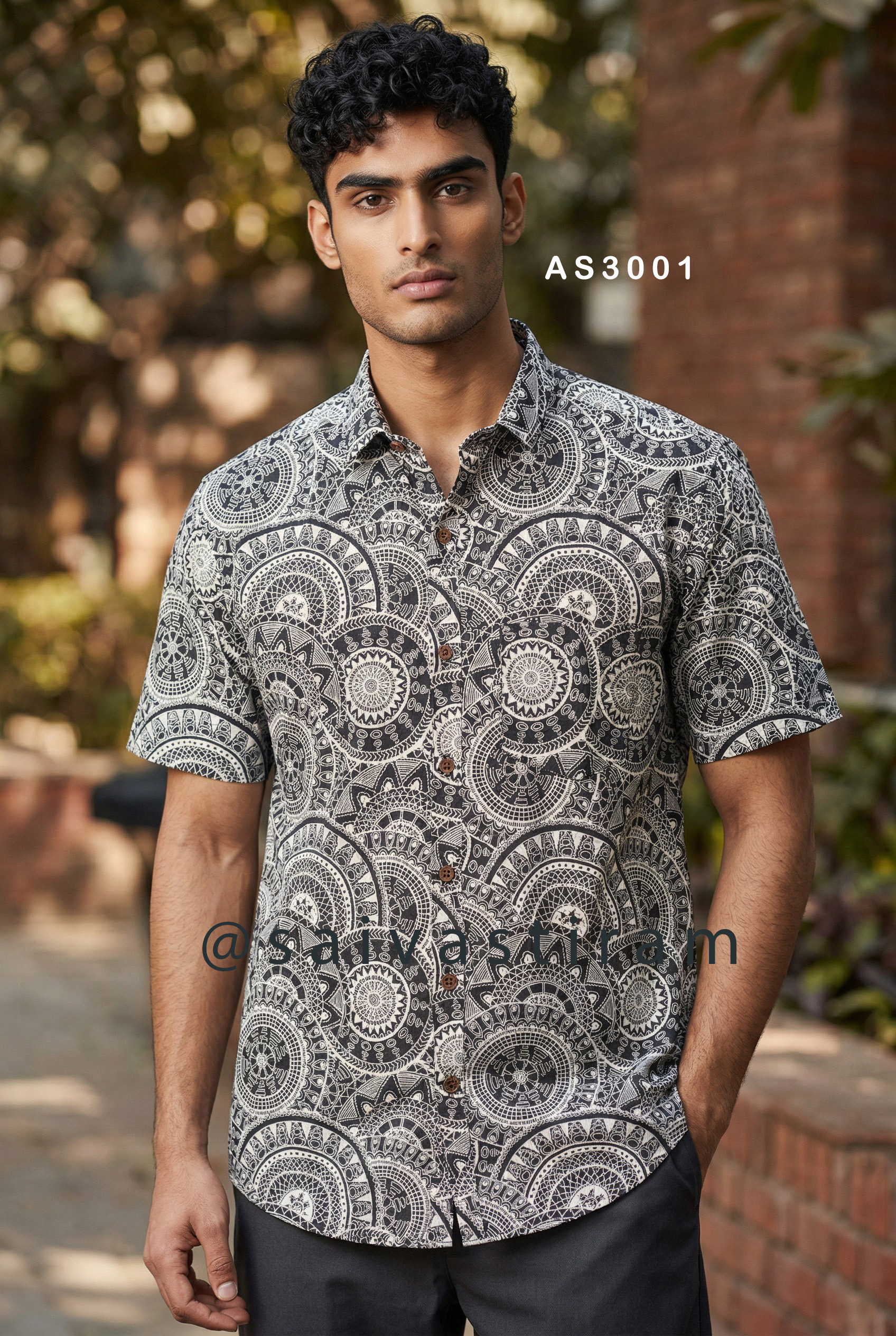 AS30: Short Sleeve Jaipuri Cotton Regular Fit Printed Shirt