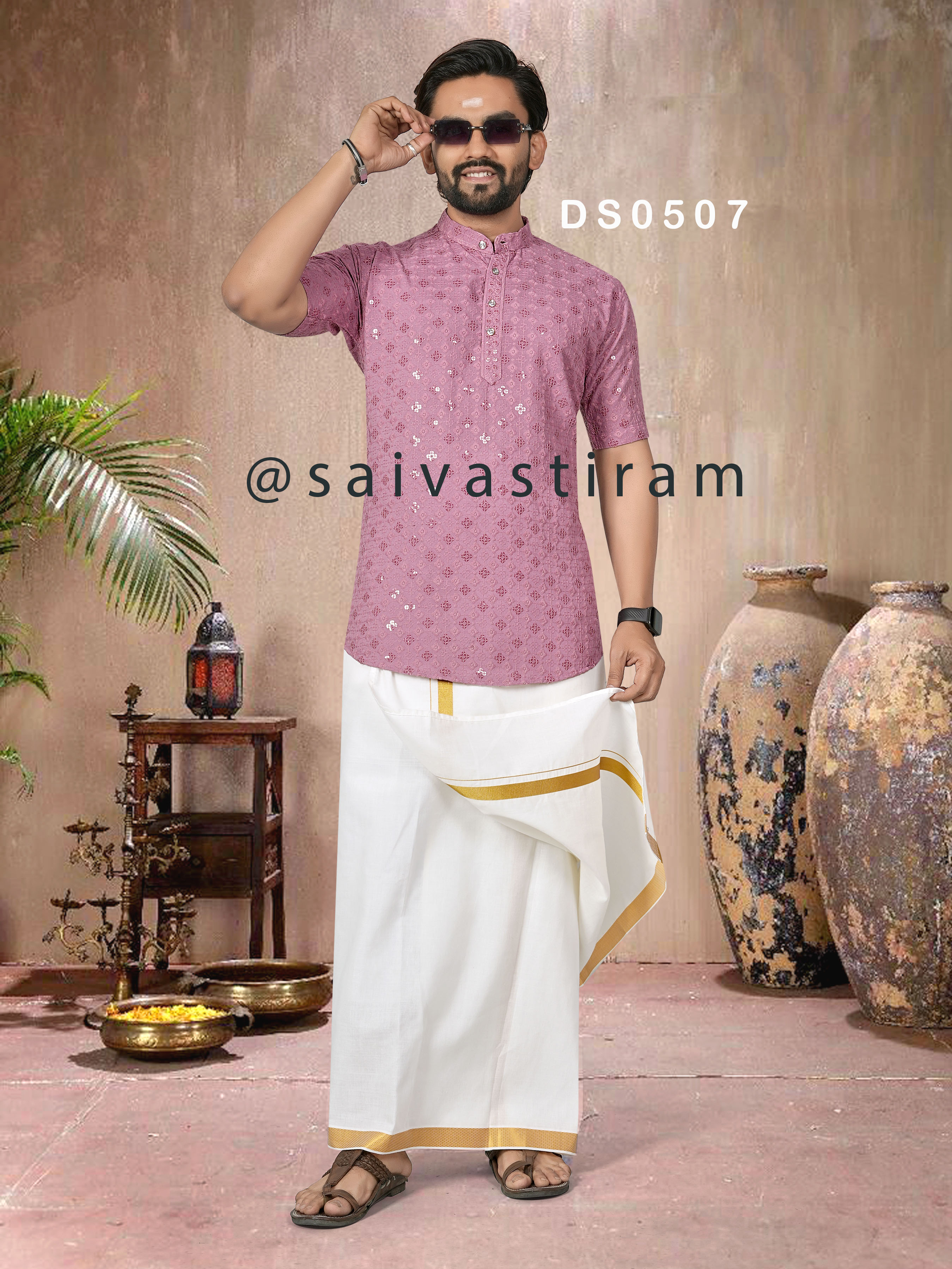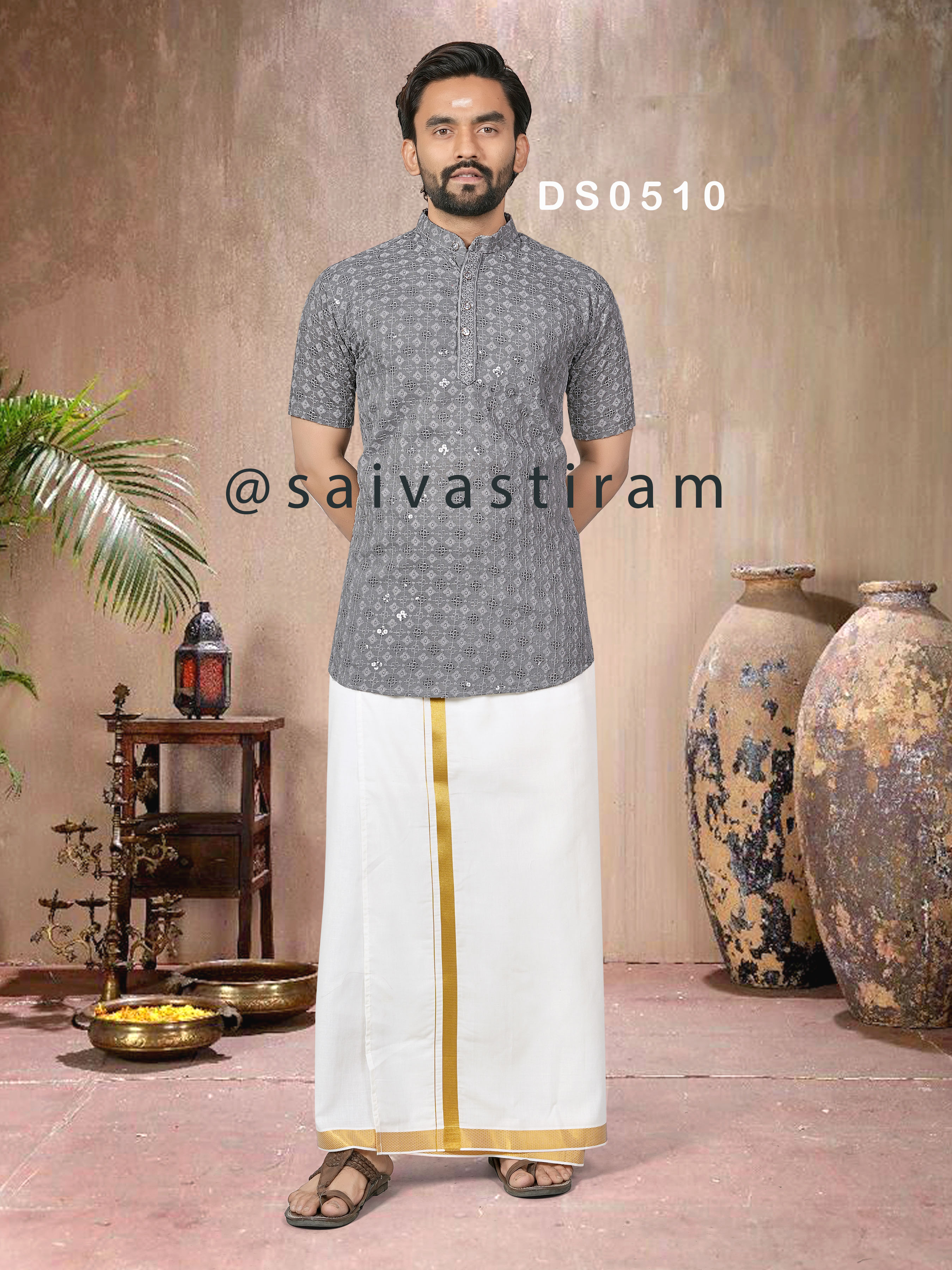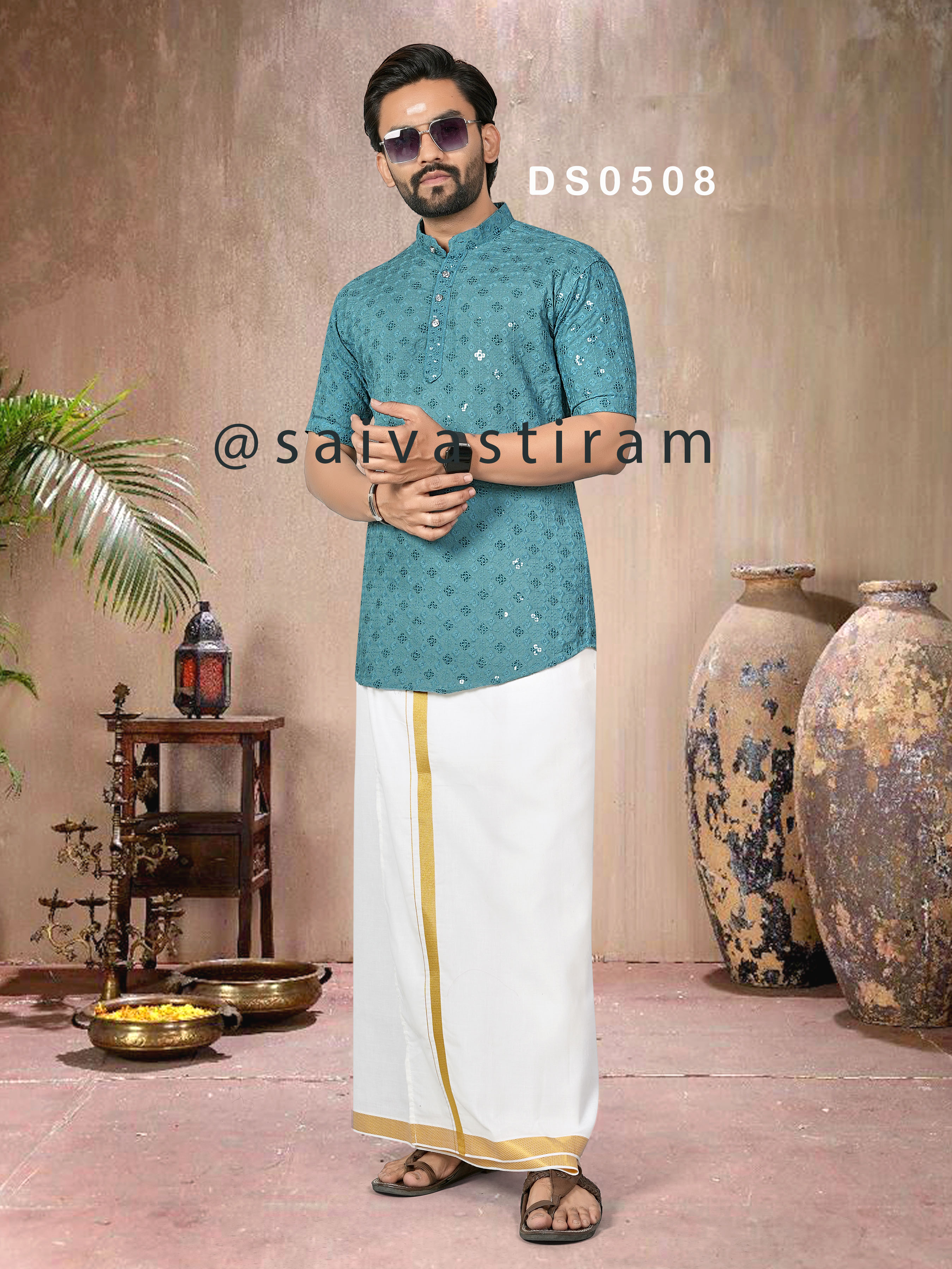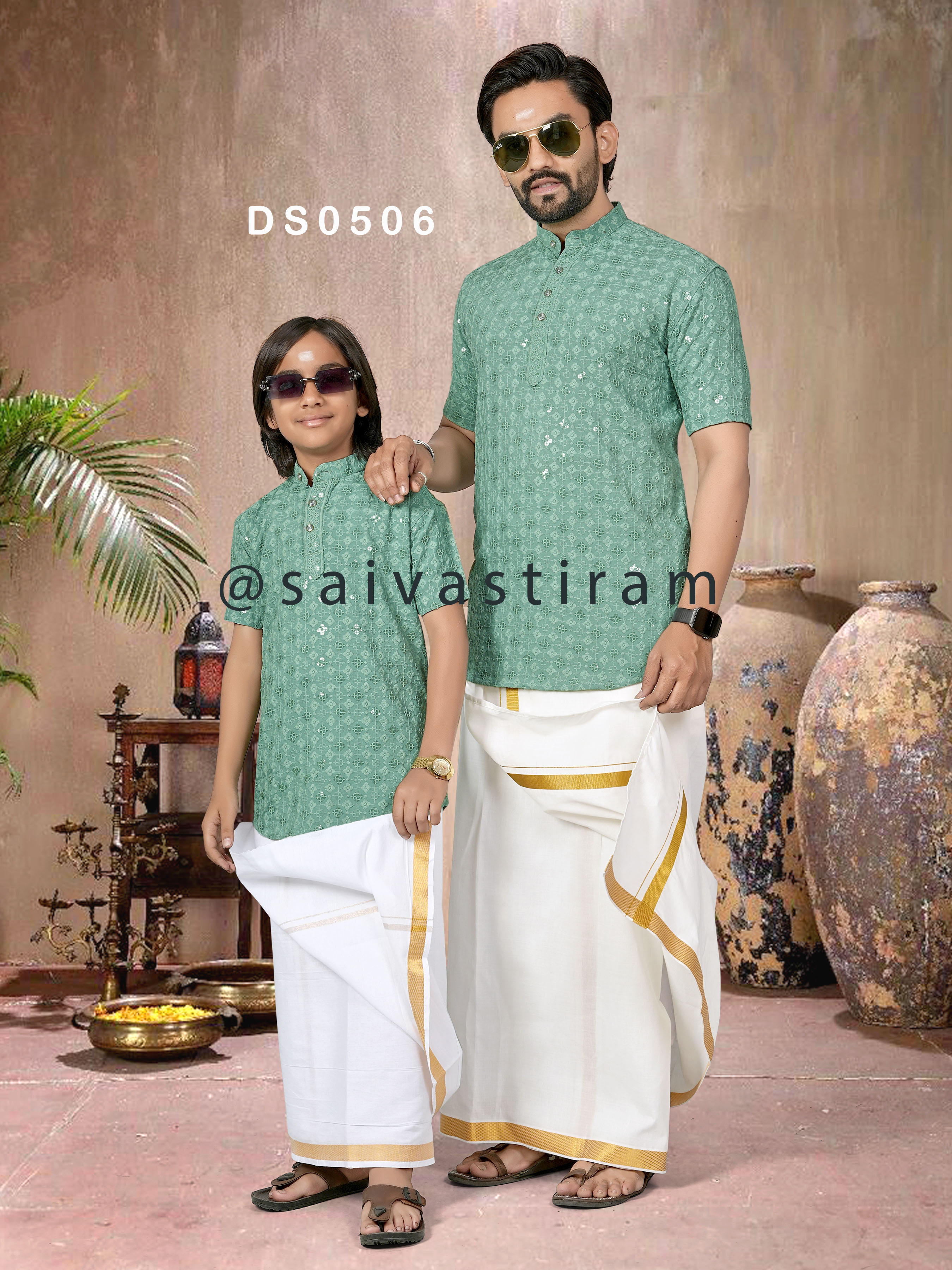 DS05 (ADULT): CHIKAN SEQUENCE WORK SHORT KURTA (FATHER AND SON COMBO)