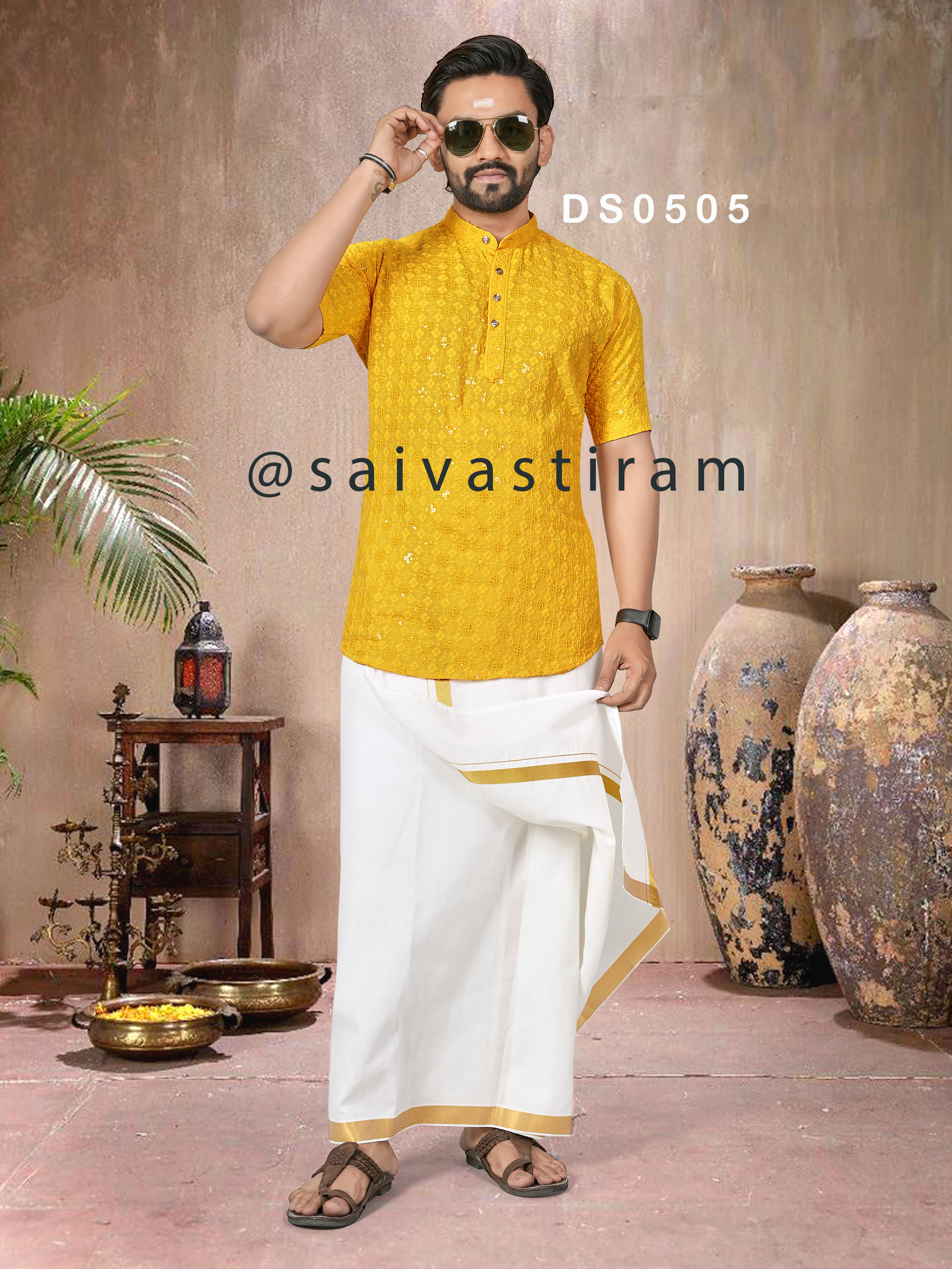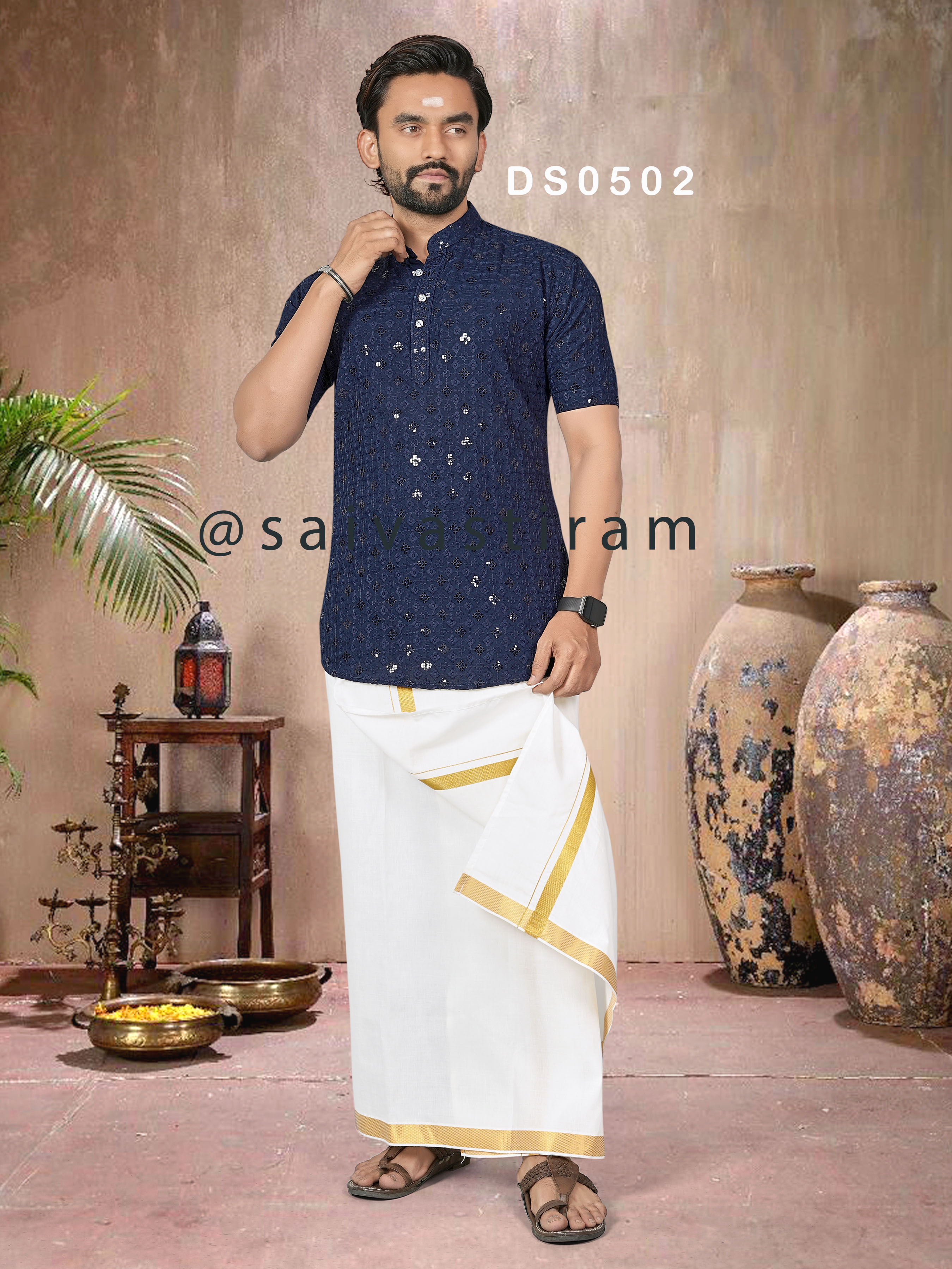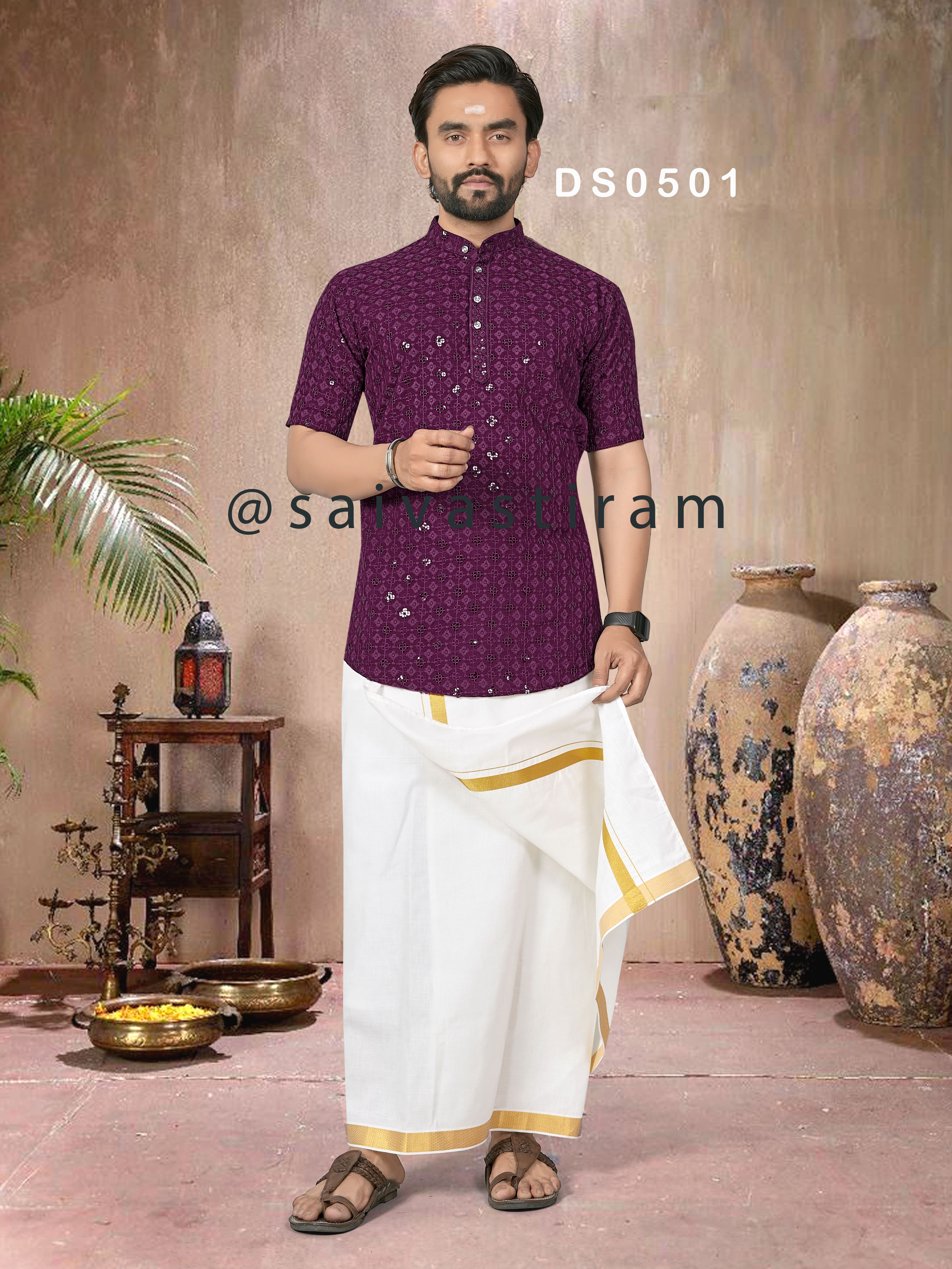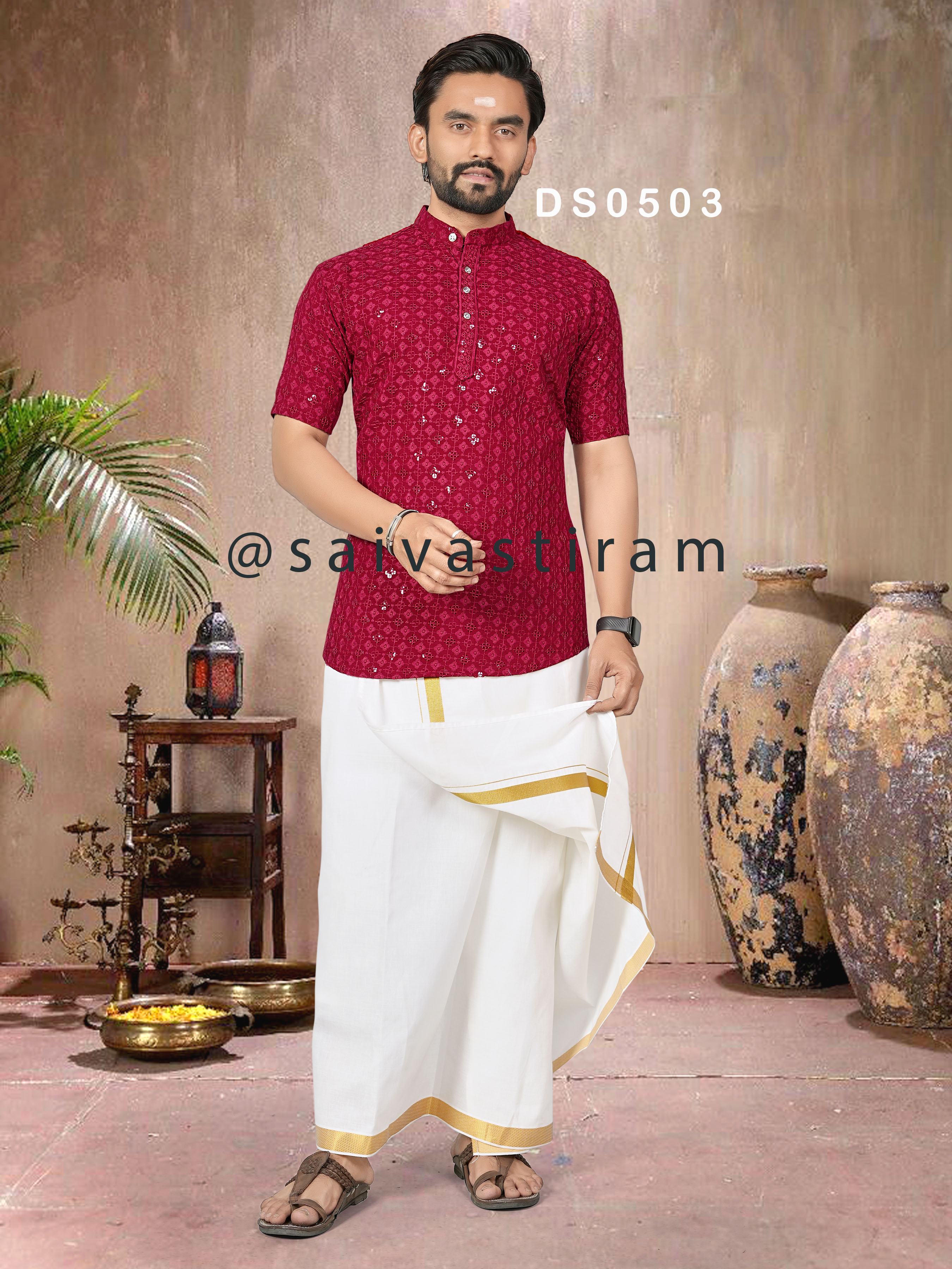 DS05 (ADULT): CHIKAN SEQUENCE WORK SHORT KURTA (FATHER AND SON COMBO)