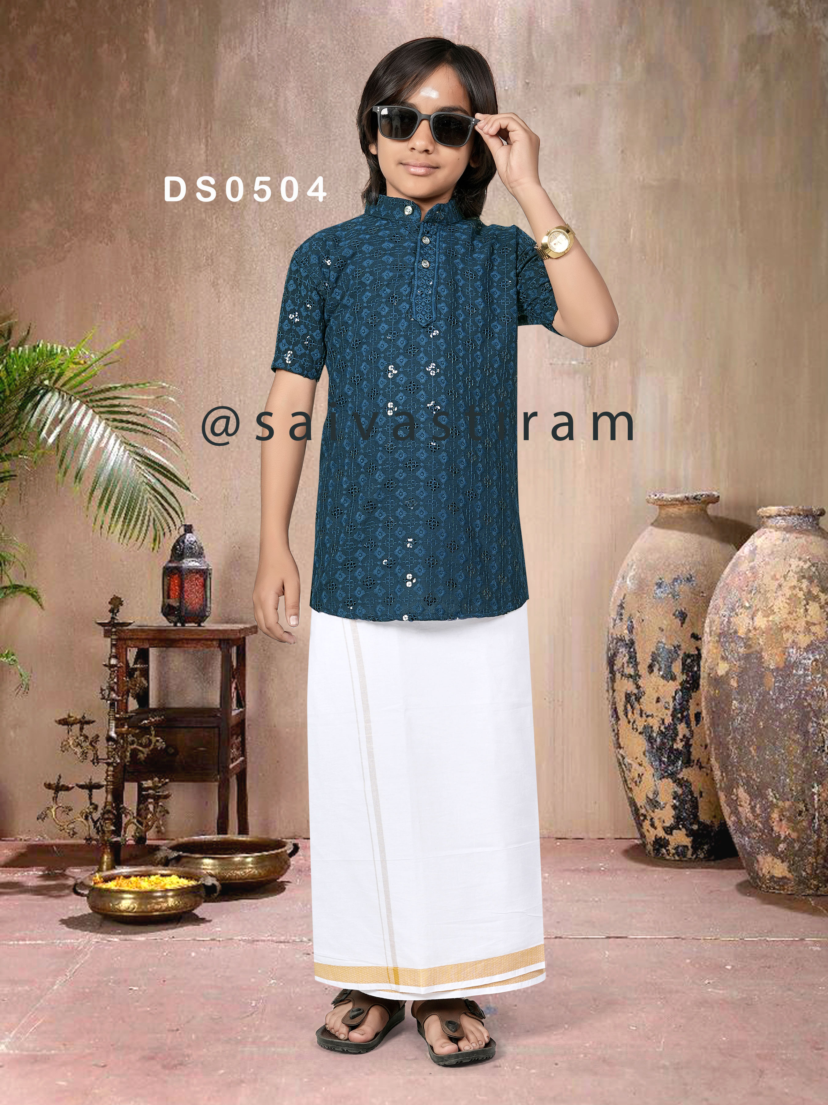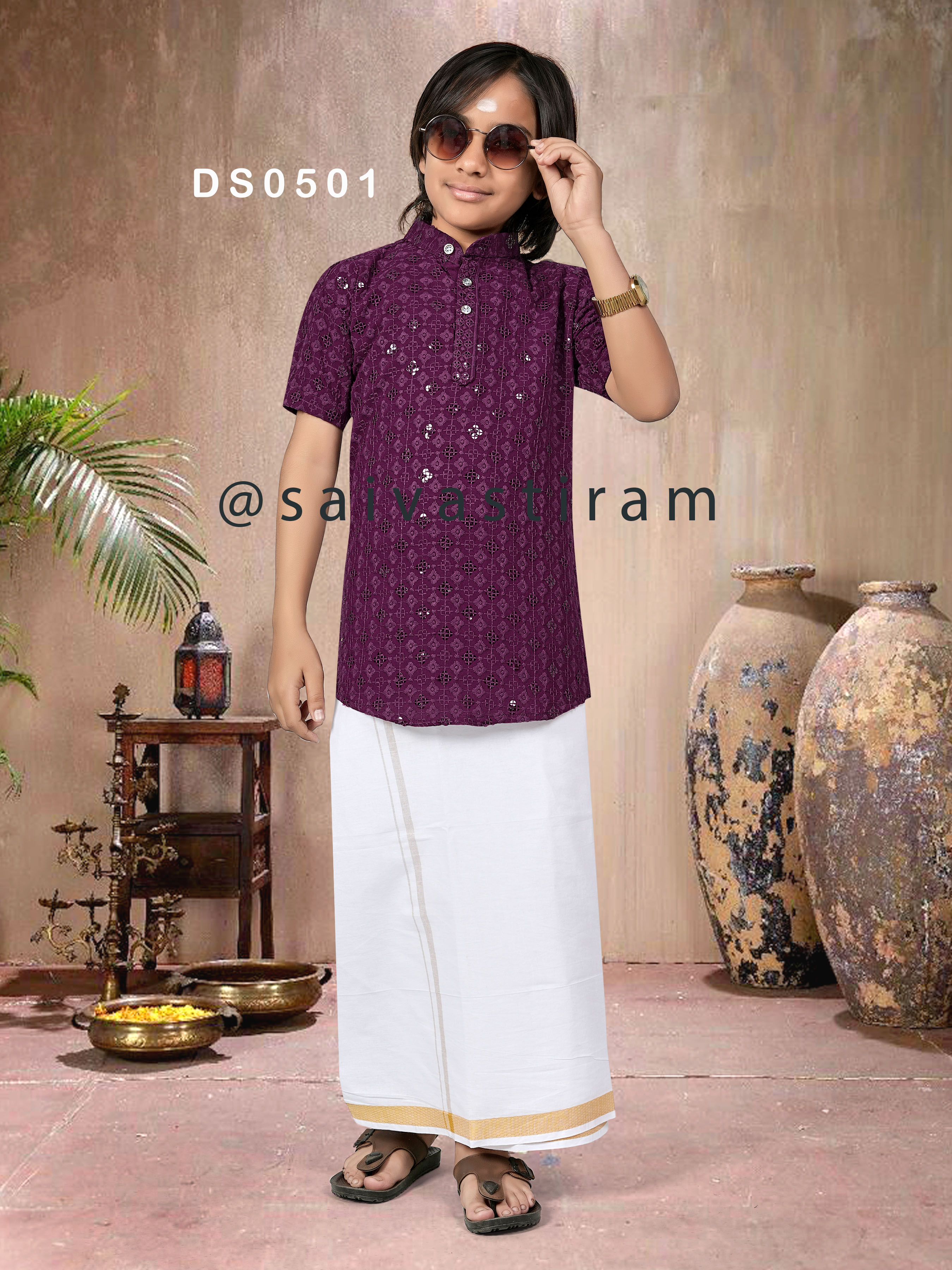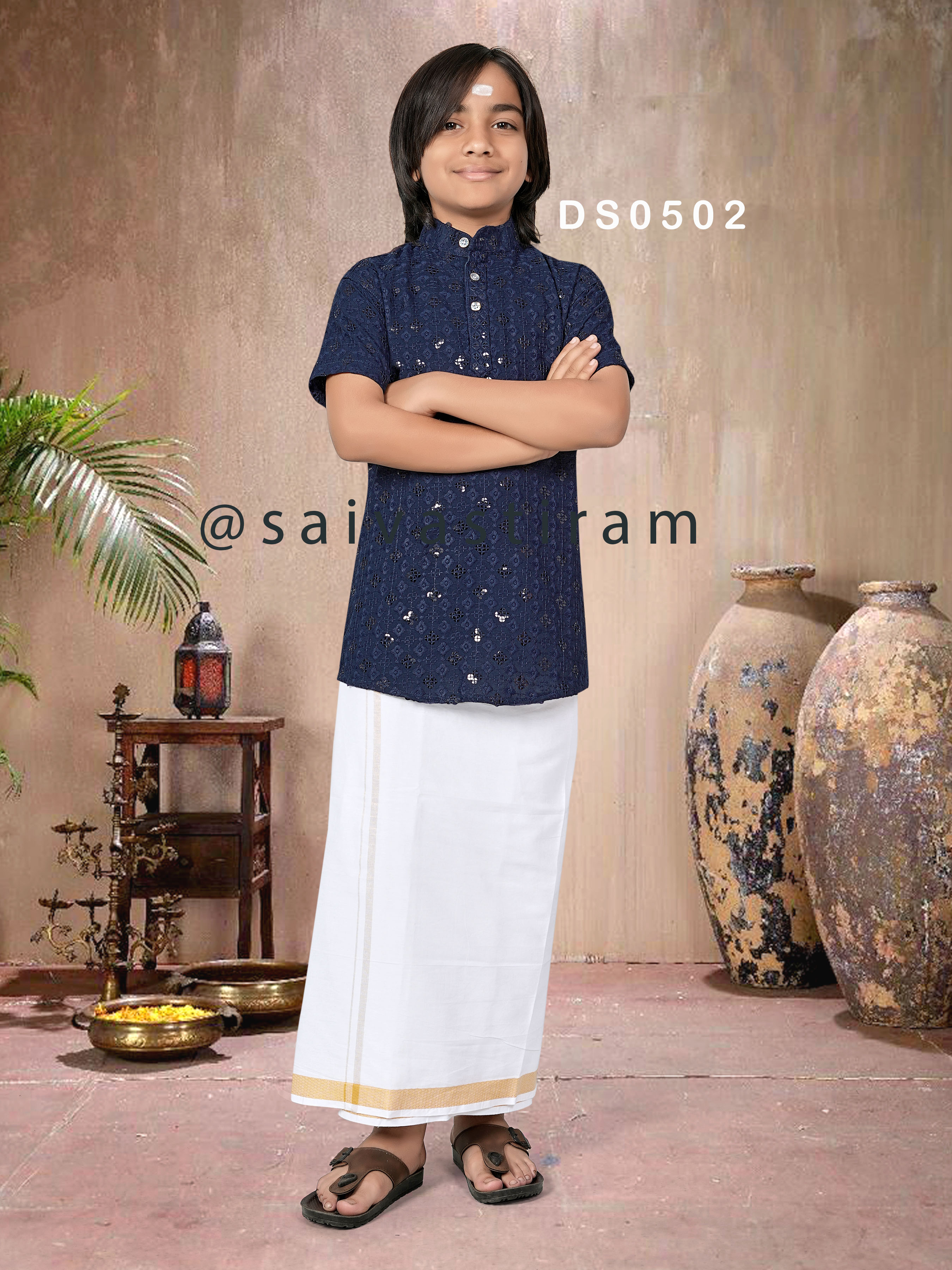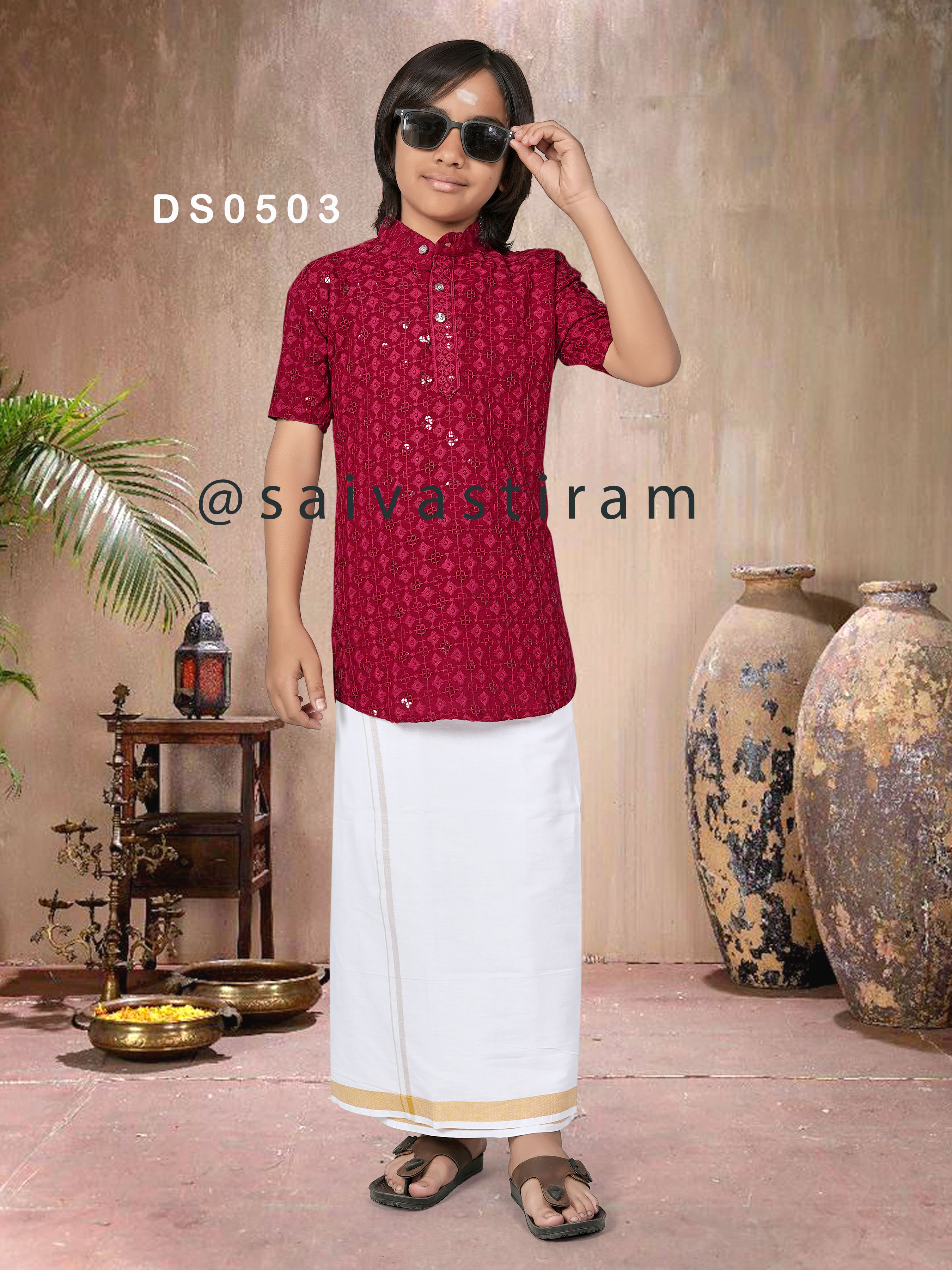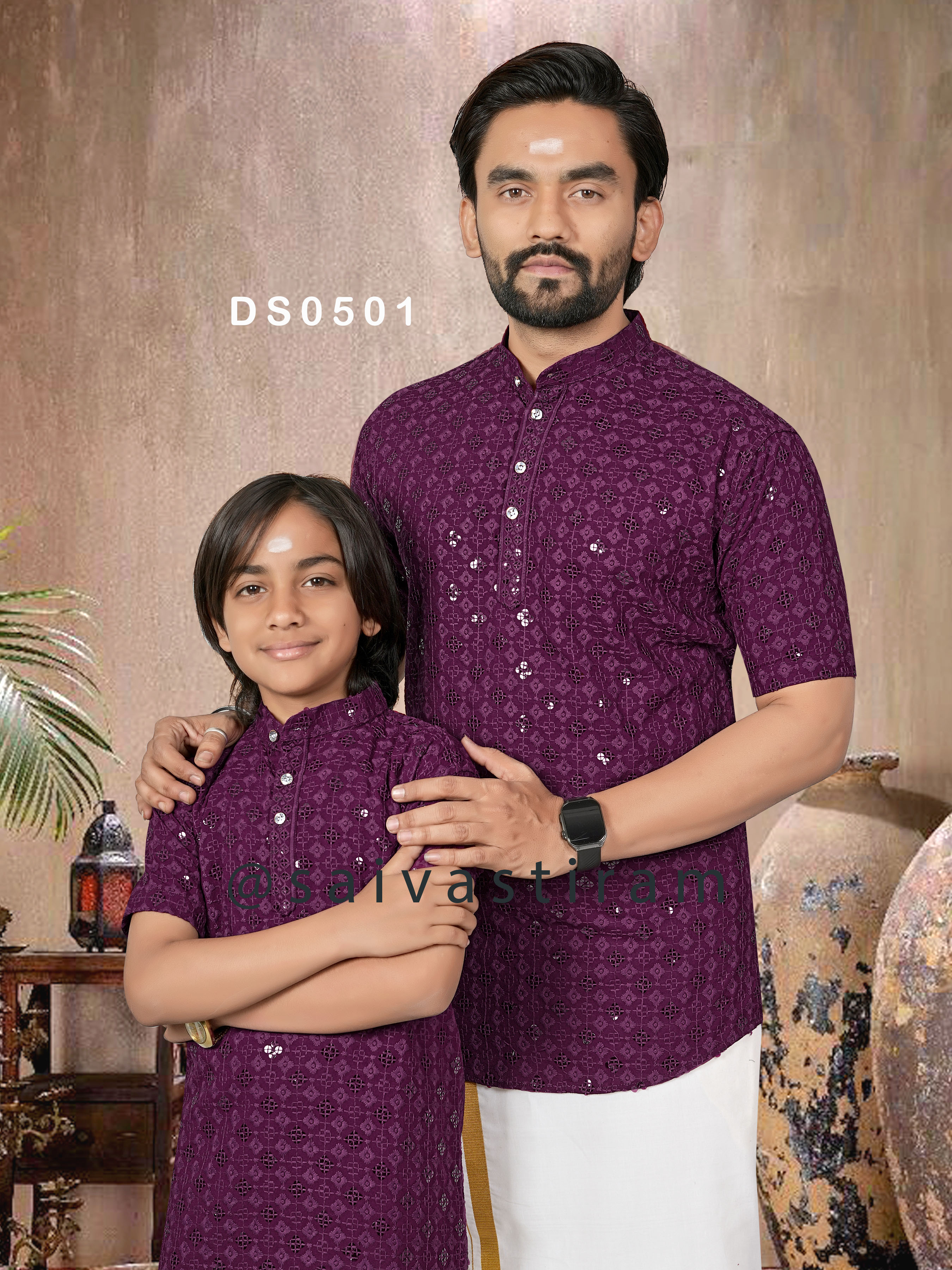 DS05 (KIDS): CHIKAN SEQUENCE WORK SHORT KURTA (FATHER AND SON COMBO)