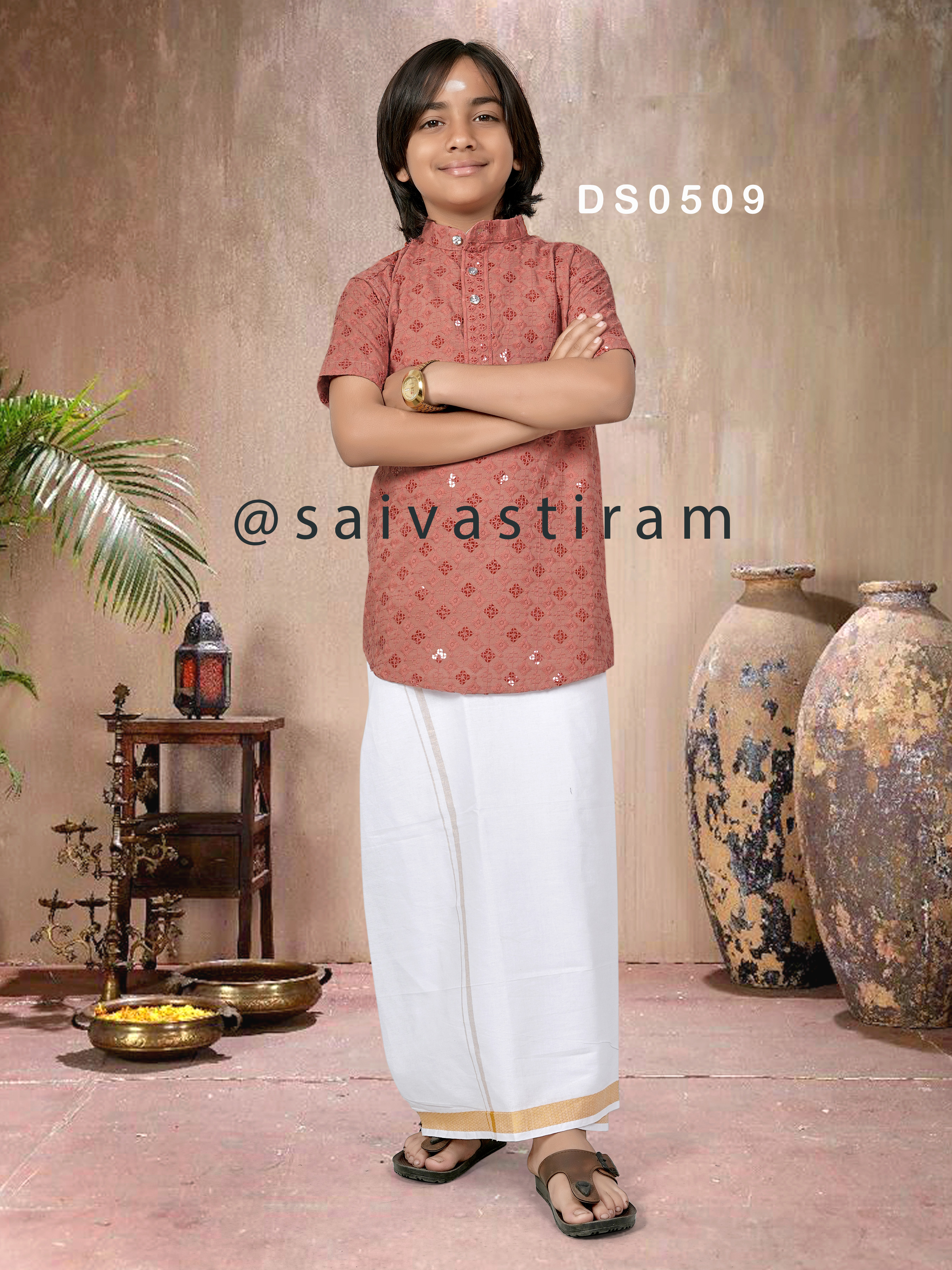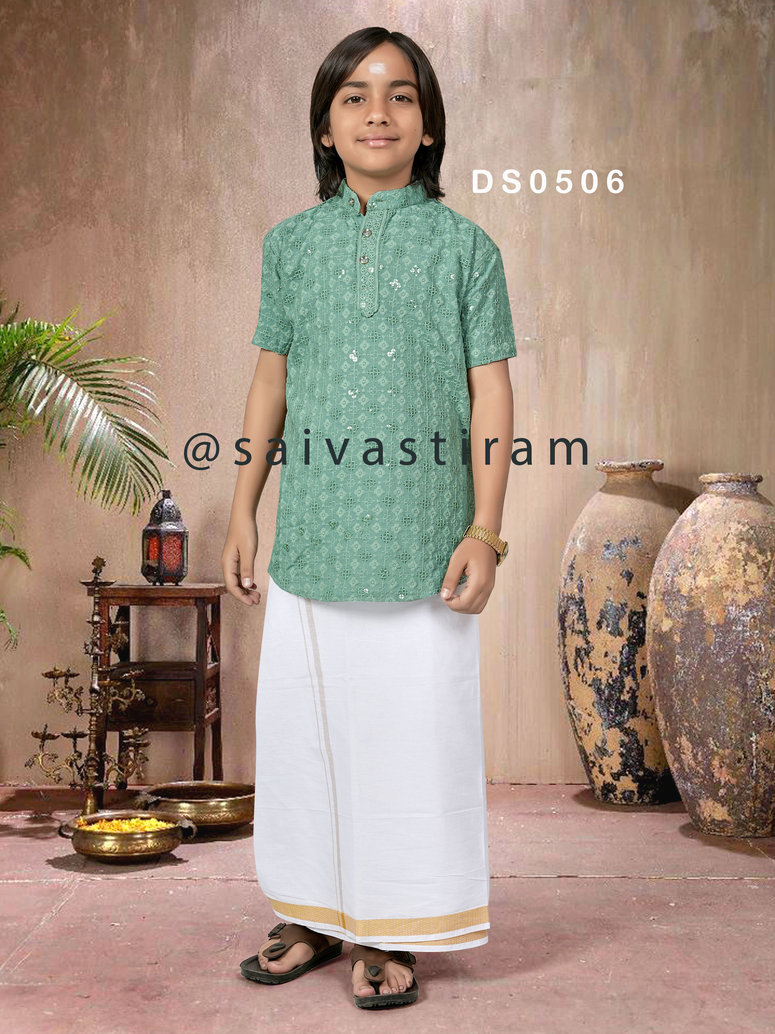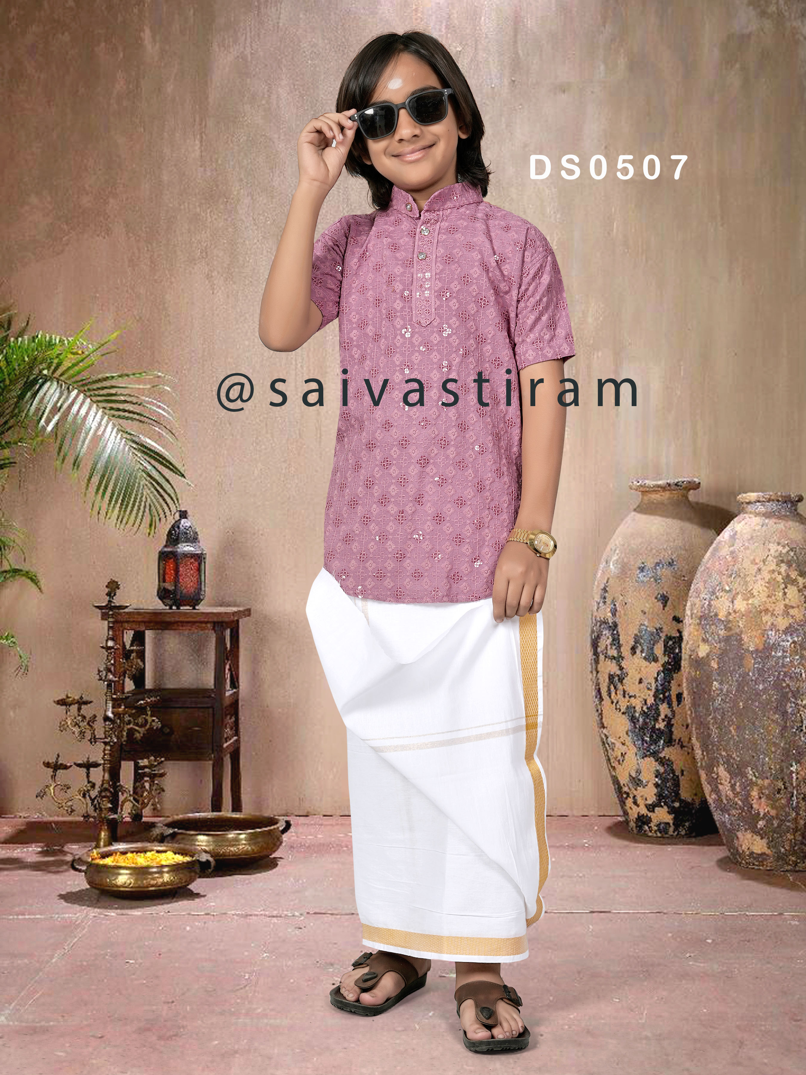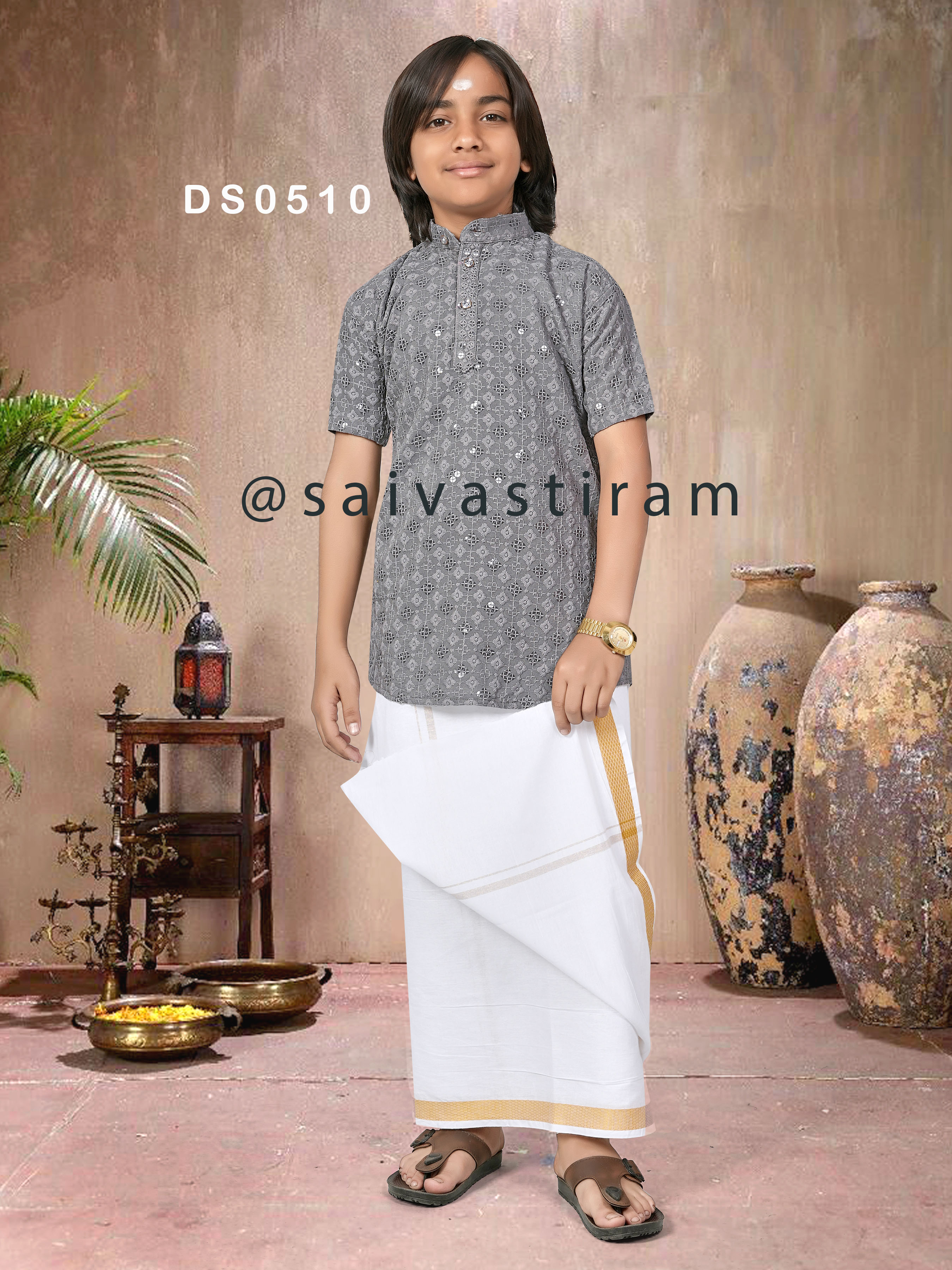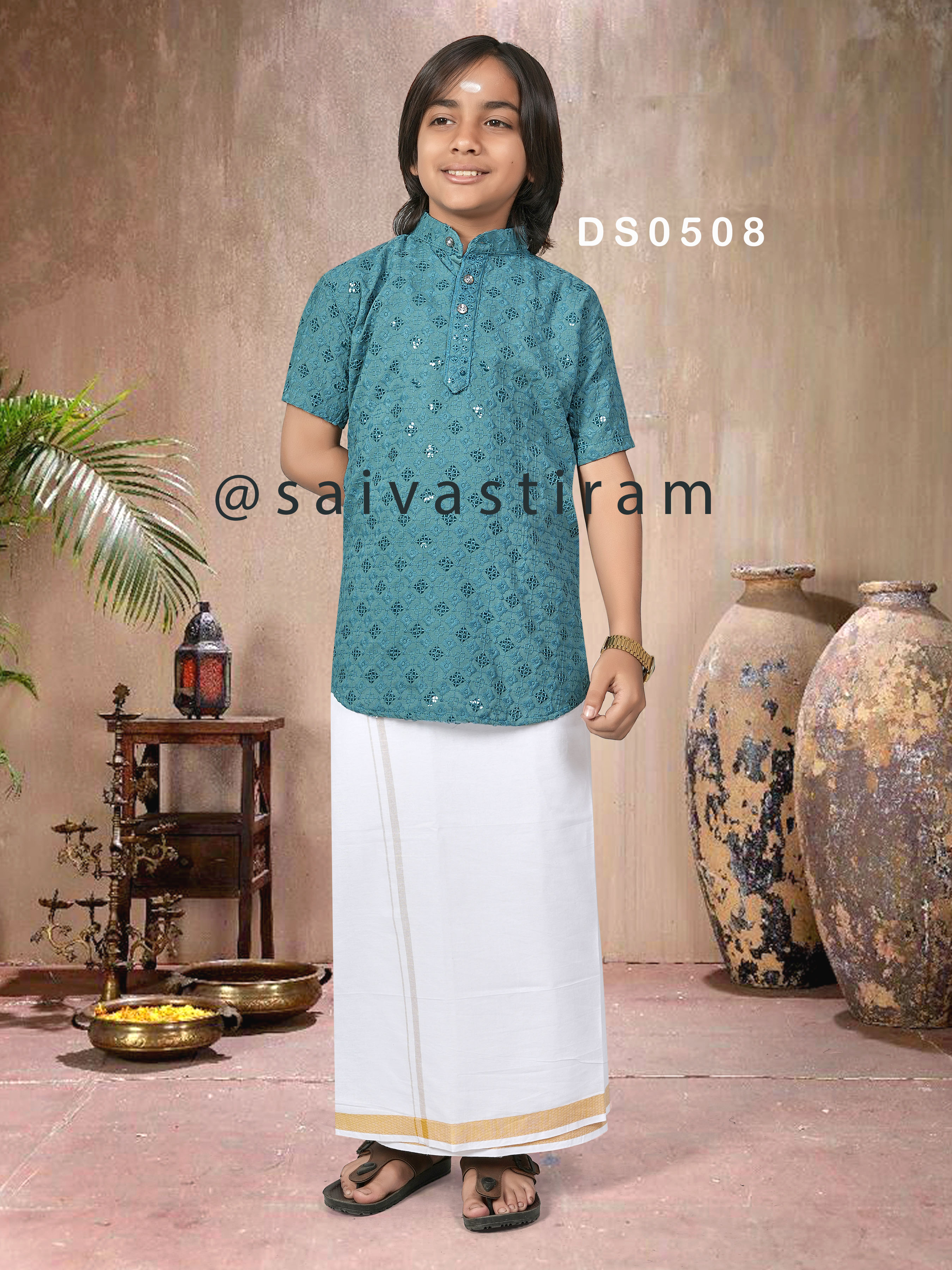 DS05 (KIDS): CHIKAN SEQUENCE WORK SHORT KURTA (FATHER AND SON COMBO)